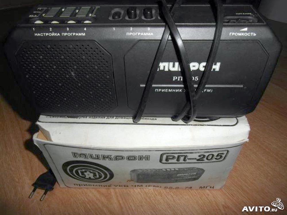 Стационарный транзисторный радиоприёмник *Микрон РП-205* с начала 2000 года выпускал Нижегородский завод имени Фрунзе. Приёмник обеспечивает уверенный приём радиостанций в городской черте или в сельской местности, электропитание от сети 220 вольт, высокую чувствительность и фиксированную настройку на четыре радиостанции в УКВ-ЧМ диапазоне. Имеется возможность приёма звукового сопровождения телепрограмм со 2-го по 5-й каналы МВ диапазона, подключения внешнего громкоговорителя и внешней антенны. Радиоприёмник имеет низкий уровень фона и шума, достаточно низкую потребляемую мощность. Диапазон частот от 65,8 до 74 мГц. Чувствительность с входа внешней антенны при соотношении сигнал/шум 26 дБ 5 мкВ. Эффективный диапазон воспроизводимых звуковых частот на линейном выходе - 63...12500 Гц. Диапазон воспроизводимых частот тракта по звуковому давлению 315...6300 Гц. ПЧ 76 кГц. Номинальная выходная мощность 0,5 Вт. Потребляемая мощность 5 Вт. Габариты приёмника - 250х120х80 мм. Масса 1 кг. Радиоприёмник *Микрон РП-205-1* вместо 4-х фиксированных, имеет плавную настройку.