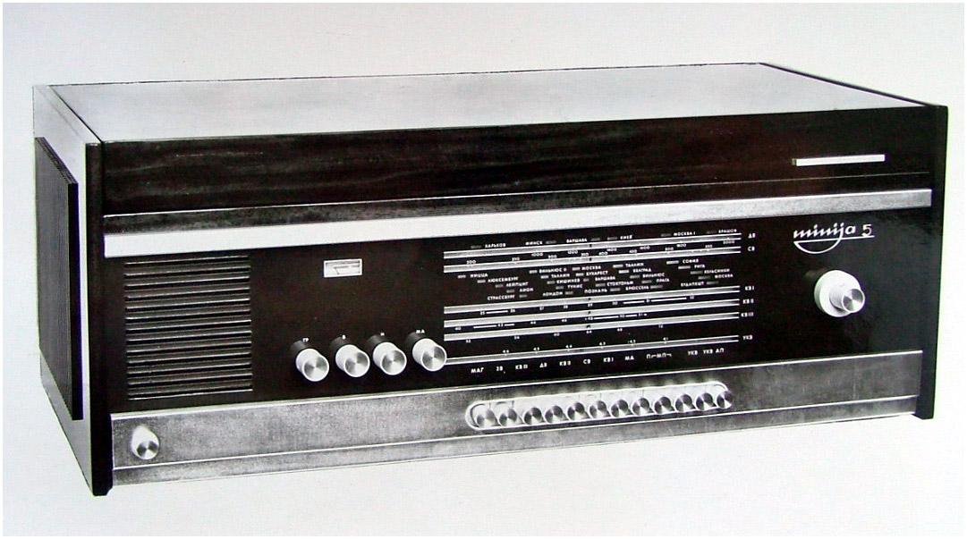 Сетевая транзисторная магнитола *Миния-5* разработана в 1969 году Каунасским радиозаводом. Как и модели **Нида**, **Нида-2**, **Нида-3** магнитола **Миния-5** была разработана на смену предыдущим ламповым моделям серии **Миния**. В новые модели были заложены все достижения в области транзисторного радиоприёма и звкозаписи тех лет. Магнитофонную панель для всех моделей одну, только с разным оформлением разработал и изготовил секретный завод измерительных приборов в гор. Вильнюсе (П/я 555). В серийное производство новая магнитола также не пошла из-за предполагаемого и задерживающегося перехода завода на выпуск малогабаритных телевизоров марки **Шилялис**.