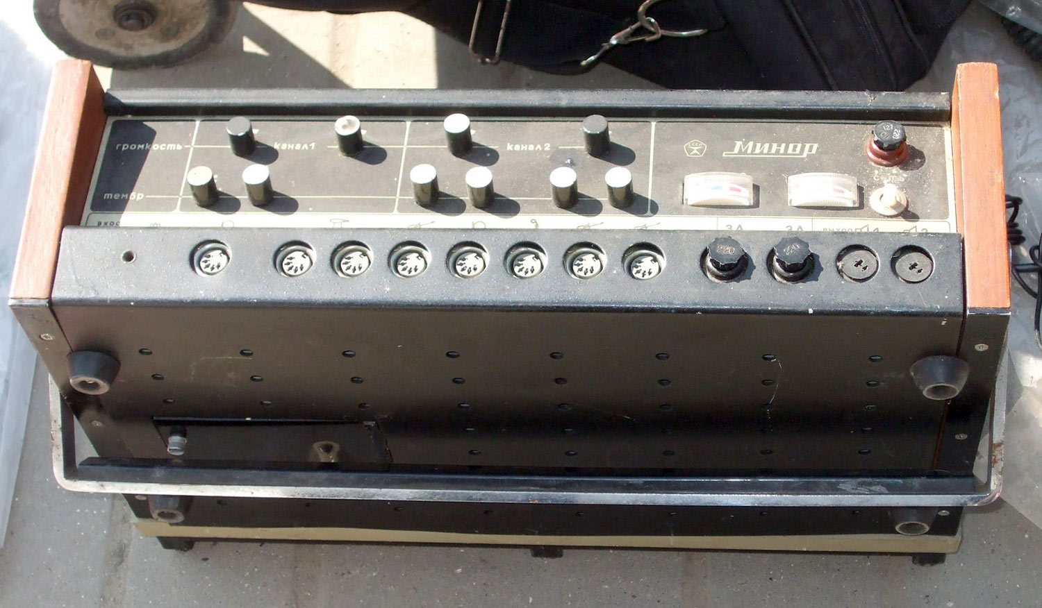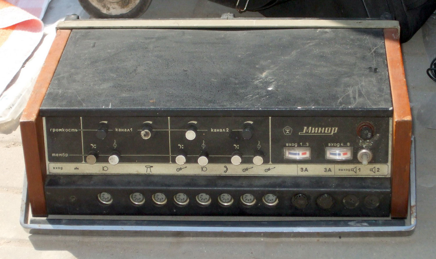 Двухканальный эстрадный усилитель *Минор* выпускался возможно с 1980 года Сарапульским заводом им. Орджоникидзе.