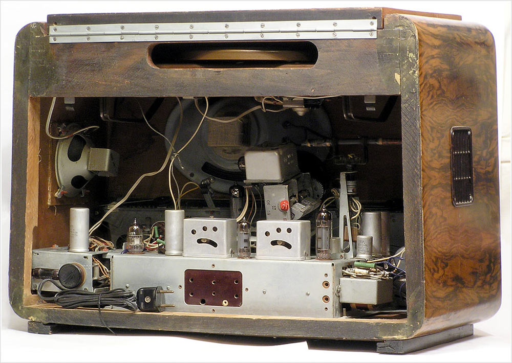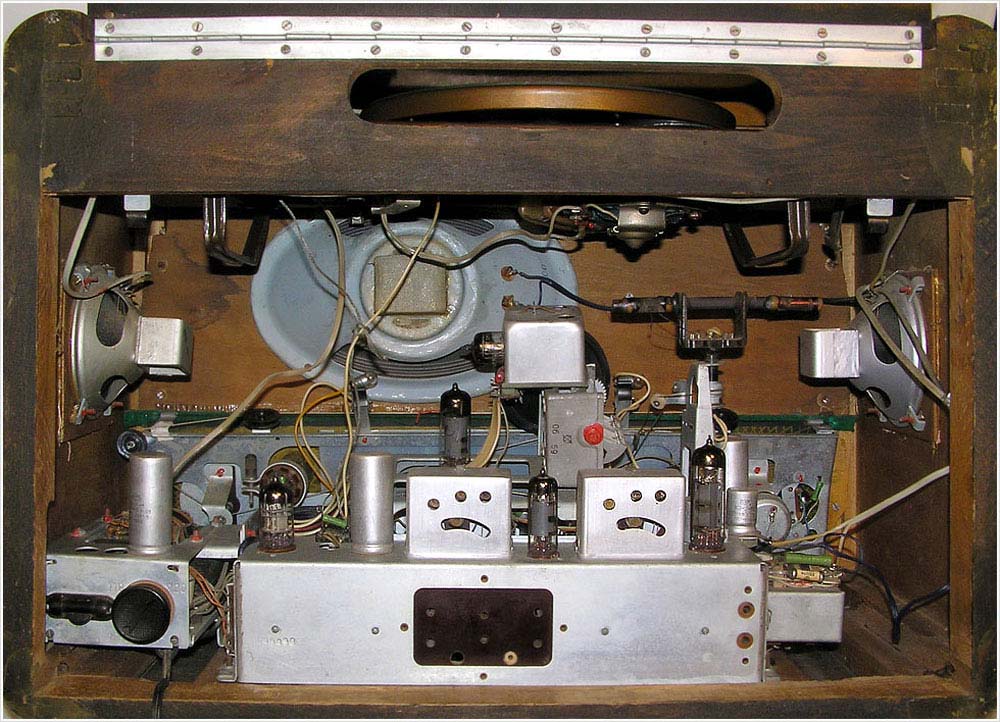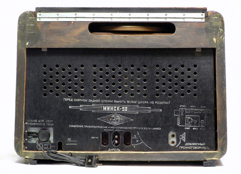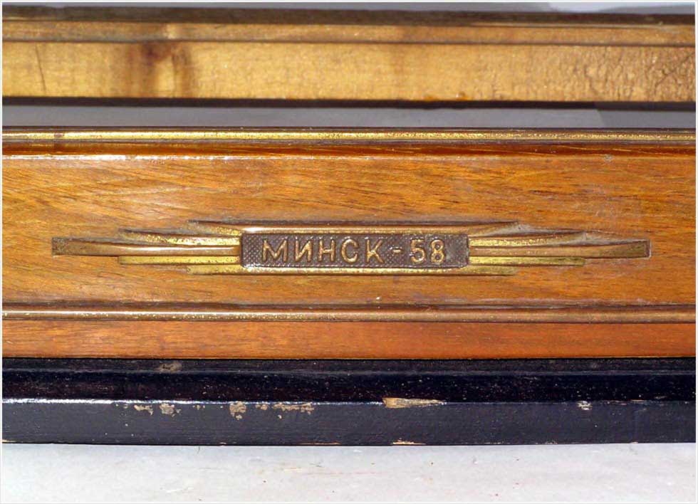 Радиола сетевая ламповая *Минск-58* с 1958 года выпускалась на Минском радиозаводе. Радиола **Минск-58** предназначена для приёма радиовещательных станций, работающих в диапазонах: ДВ, СВ, KB, УКВ, а также для проигрывания обычных и долгоиграющих пластинок. Диапазон KB разбит на 3 поддиапазона. Для приёма в диапазоне ДВ, СВ применена внутренняя поворотная магнитная антенна, для приёма в УКВ-ЧМ диапазоне внутренний диполь. В радиоле осуществлена раздельная и плавная регулировка тембра по низким и высоким звуковым частотам, плавная регулировка полосы пропускания по промежуточной частоте в AM тракте (от 3,5 до 18 кГц), автоматическая регулировка усиления. Акустическая система радиолы состоит из 3-х громкоговорителей, одного широкополосного 5ГД-14 и двух высокочастотных ВГД-1, обеспечивающая малонаправленную характеристику излучения во всем диапазоне воспроизводимых звуковых частот. При приёме УКВ-ЧМ станций и проигрывании долгоиграющих пластинок акустическая система радиолы и её электрический тракт обеспечивают эффективное воспроизведение звукового спектра в полосе звуковых частот - 70...10000 Гц. В радиоле применены следующие радиолампы: 6Н3П, 6И1П, 6К4П, 6Н2П, 6П14П, 6Е5С. Номинальная выходная мощность усилителя низкой частоты 2 Вт. Размеры радиолы - 590х426х330 мм. Вес 18 кг.