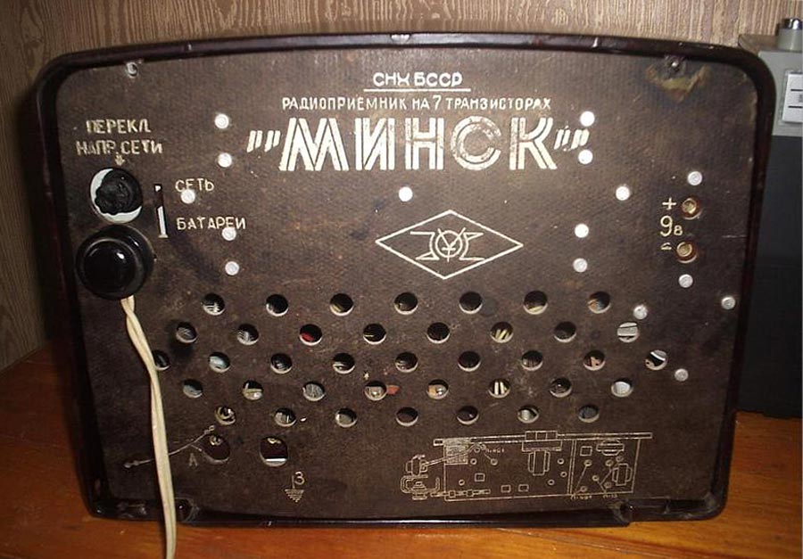 Стационарный транзисторный радиоприёмник *Минск-Т* с 1959 года выпускал Минский радиозавод. *Минск-Т* - экспериментальные модели в двух вариантах внешнего оформления. Приёмников первого варианта было выпущено около 10 тысяч, второго несколько экземпляров. Считается что **Минск-Т** - первый в СССР стационарный транзисторный приёмник. У приёмника были и наименования **Минск-1**, **Минск Т-60**. **Минск Т-60** получил Высшую награду Всемирной выставки в Нью-Йорке в марте 1960 года. В серийное производство пошёл приёмник первого варианта, в большей степени в дереве с отличиями в схеме и под наименованием **Минск**. Позже приёмник **Минск-Т** выпускался тоже в дереве, это был тот-же **Минск**, но с приставкой для питания от сети. По оформлению опытные модели опередили своё время и что бы поставить их на конвейер для массового производства требовались значительные изменения технологического процесса и денежные ресурсы, к чему радиопромышленность СССР была не готова. Радиоприёмник **Минск-Т** (М-1, Т-60) представляет собой супергетеродин, выполненный на 7 плоскостных полупроводниковых триодах. Диапазоны: ДВ - 150...415 кгц и СВ - 520...1600 кгц. Чувствительность с наружной антенной в диапазоне ДВ 100 мкВ, СВ 70 мкВ, при работе с внутренней магнитной антенной на ДВ 1,5 мВ/м; СВ 0,8 мВ/м. Ослабление помехи по соседнему и по зеркальному каналам 26 дБ в диапазоне ДВ и 20 дБ в диапазоне СВ. Максимальная выходная мощность 0,4 Вт. Диапазон воспроизводимых звуковых частот 200...3500 гц. Питание осуществляется от 6 элементов *Сатурн* или от сети переменного тока, через выносной или встроенный БП.