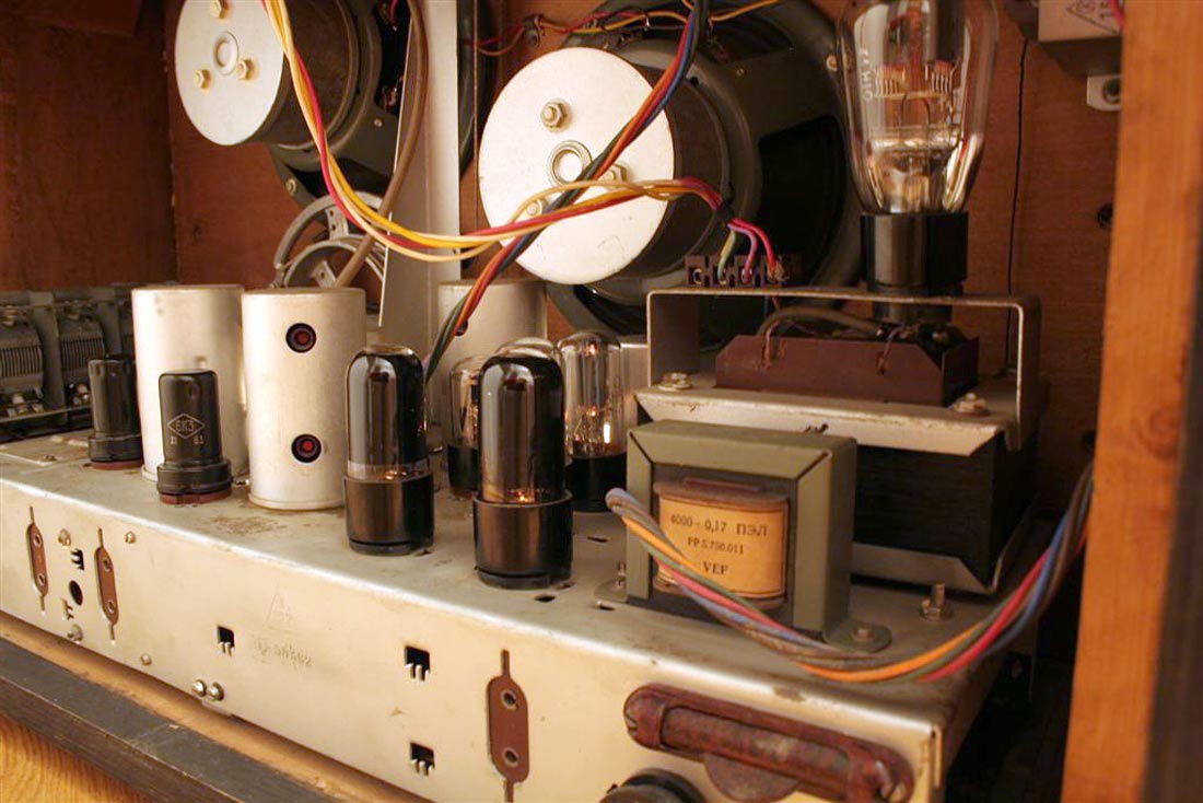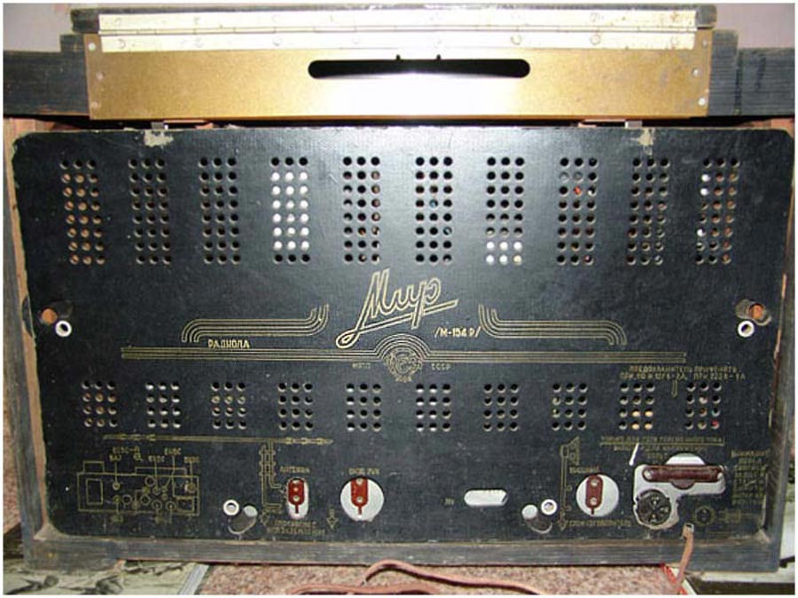Радиоприёмник и радиола сетевые ламповые *Мир М-154* и *Мир М-154Р* с начала 1955 года выпускались на Рижском Государственном электротехническом заводе ВЭФ. Приёмник 1-го класса **Мир М-154* является модернизацией модели **Мир М-152* и кроме улучшенного внешнего вида и электроакустических данных, по техническим параметрам совпадает с ним. На его базе создана и радиола **Мир М-154Р* отличающаяся применением в ней универсального ЭПУ. Внешний вид моделей почти не изменился, за исключением переноса лампы для индикатора настройки с центра, на левую часть передней панели, замены радиоткани, а также небольших декоративных украшений футляра и лицевой панели. Уменьшены габариты футляра, заменены громкоговорители, уменьшено количество ламп до 11, в усилителе НЧ лампы 6П3С заменены на 6П6С, введён режим местного приёма, число КВ поддиапазонов уменьшено до 3. Громкоговорителей два: 4ГД-3ВЭФ и 4ГД-4ВЭФ, они одинаковы по АЧХ, но отличаются резонансными частотами. ЭПУ имеет 2 скорости вращения диска 78, 33 об/мин и состоит из двигателя ДАГ-1 с автостопом и пьезоэлектрического звукоснимателя ЗПК-54. Габариты приёмника и радиолы идеинтичны. Масса приёмника 35 кг, радиолы 42 кг. Потребляемая мощность приёмником не более 100 вт, радиолой при проигрывании пластинок 120 вт.