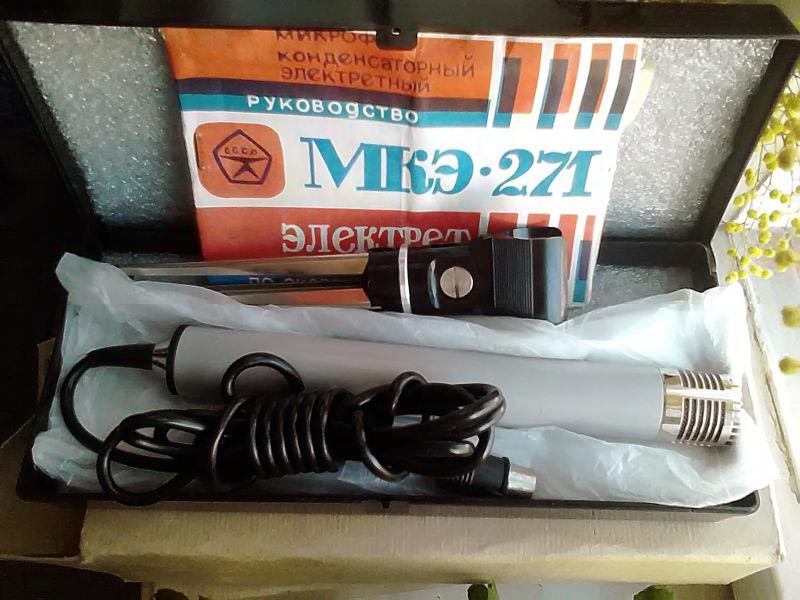 Электретный микрофон типа *МКЭ-271* выпускался с 1986 года Витебским ПО *Монолит*. Полупрофессиональный односторонненаправленный микрофон. Диапазон частот 20...20000 Гц. Чувствительность 2 мВ/Па. Неравномерность ЧХ 14 дБ. Выходное сопротивление 100 Ом. Габариты модели 25х205 мм. Масса с кабелем 240 гр.