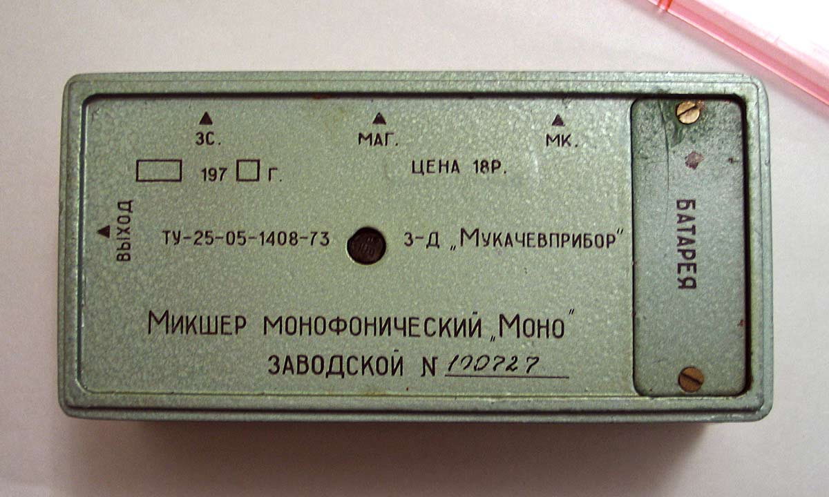 Микшер монофонический *Моно* выпускал с 1974 года завод Мукачевприбор. Микшер *Моно* предназначен для работы с любым магнитофоном для получения комбинированной (смешанной) записи от 3-х различных источников звукового сигнала; микрофона, звукоснимателя и звукоснимателя электропроигрывателя.