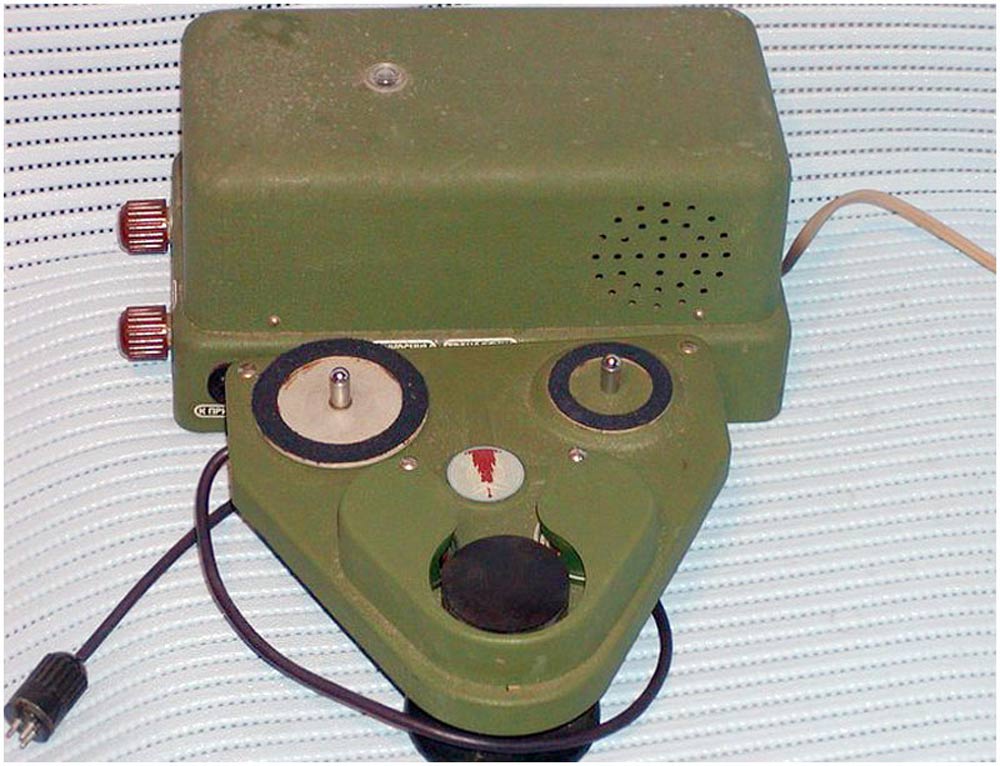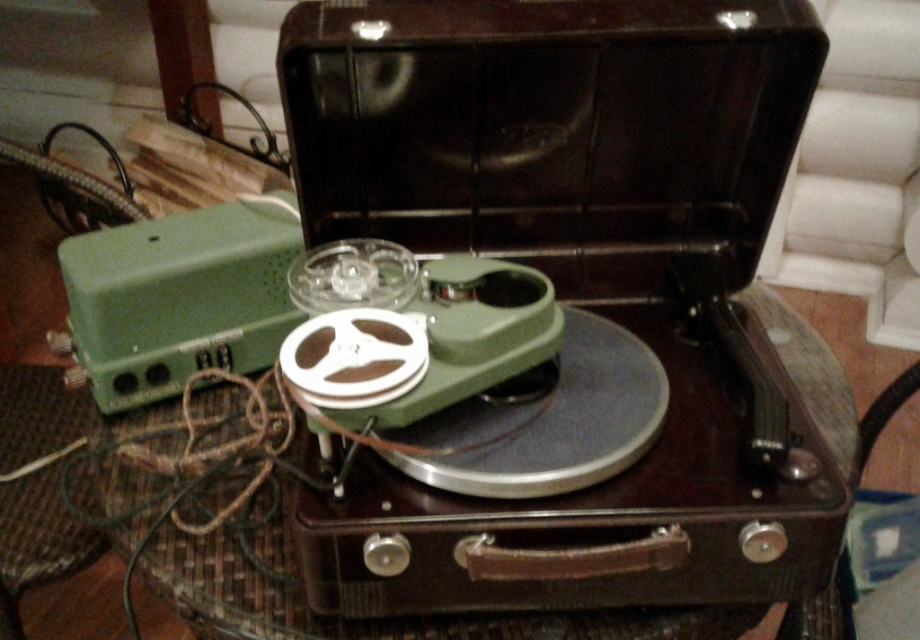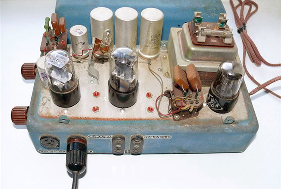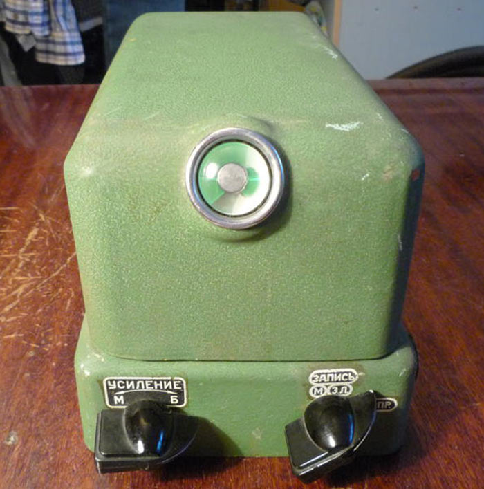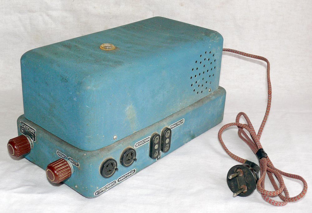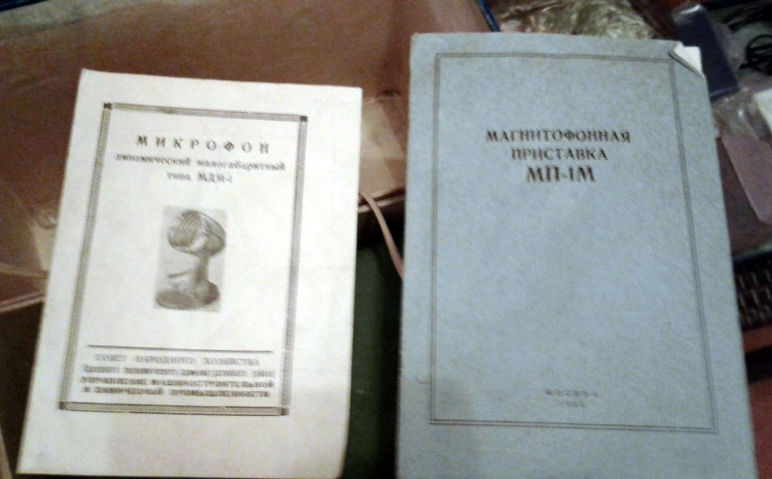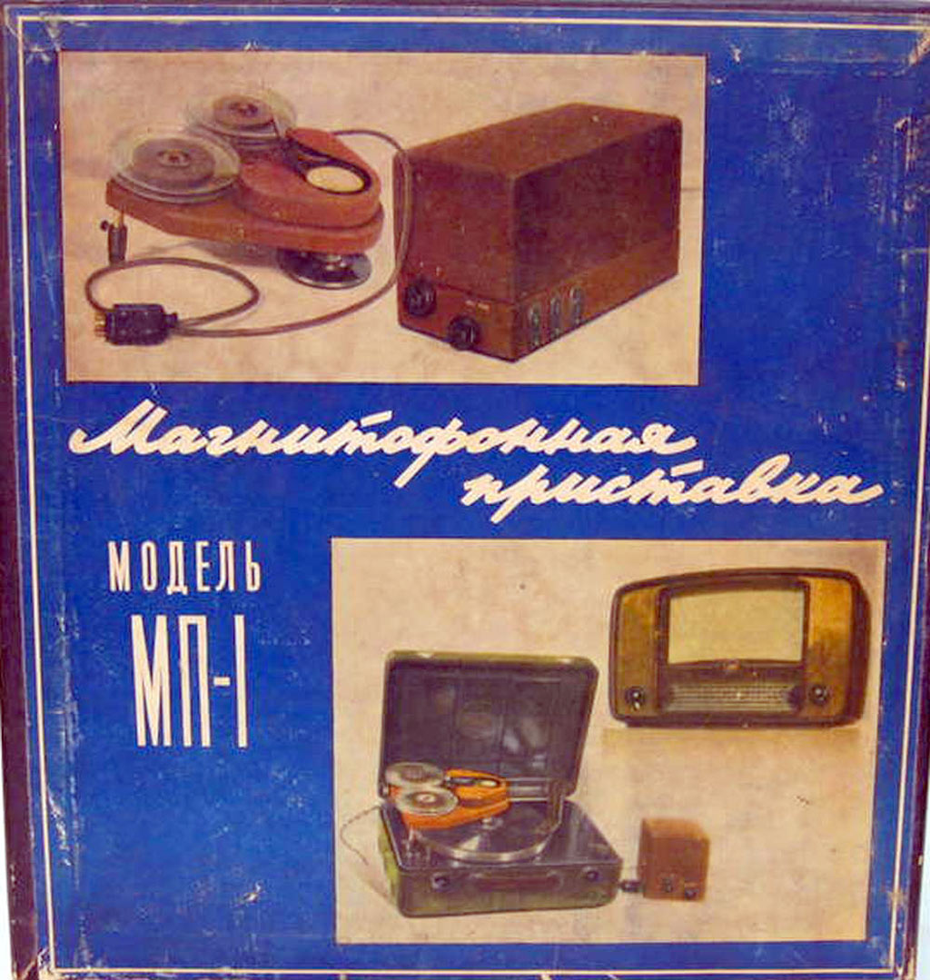 Магнитофонные приставки *МП-1* и *МП-2* соответственно с 1954 и 1957 года выпускал Московский прожекторный завод. Магнитофонная приставка **МП-1** является устройством для двухдорожечной записи и воспроизведения звука, работающее совместно с проигрывателем и приёмником имеющим вход для подключения звукоснимателя. Приставка **МП-1** обеспечивает запись со звукоснимателя, радиоприёмника, трансляционной сети, пьезоэлектрического микрофона, воспроизведение сделанных записей через приёмник или усилитель. В качество носителя используется ферромагнитная лента типа *С*. Номинальная скорость звуконосителя 19,25 см/сек при условии, что диск проигрывателя имеет скорость 78 оборотов в минуту. Номинальный уровень выходного сигнала 1,0 В. Полоса записываемых и воспроизводимых частот 100...5000 Гц. Длительность записи на oдной кассете около 20 минут. Собственные шумы приставки в 50...70 paз меньше номинального выходного уровня. Приставка питается от сети переменного тока 127 или 220 В. Приставка не имеет индикатора уровня записи, из-за чего надо было сделать несколько пробных фрагментов, прежде чем приступить к записи. Заводом выпущено около 60 тысяч приставок.