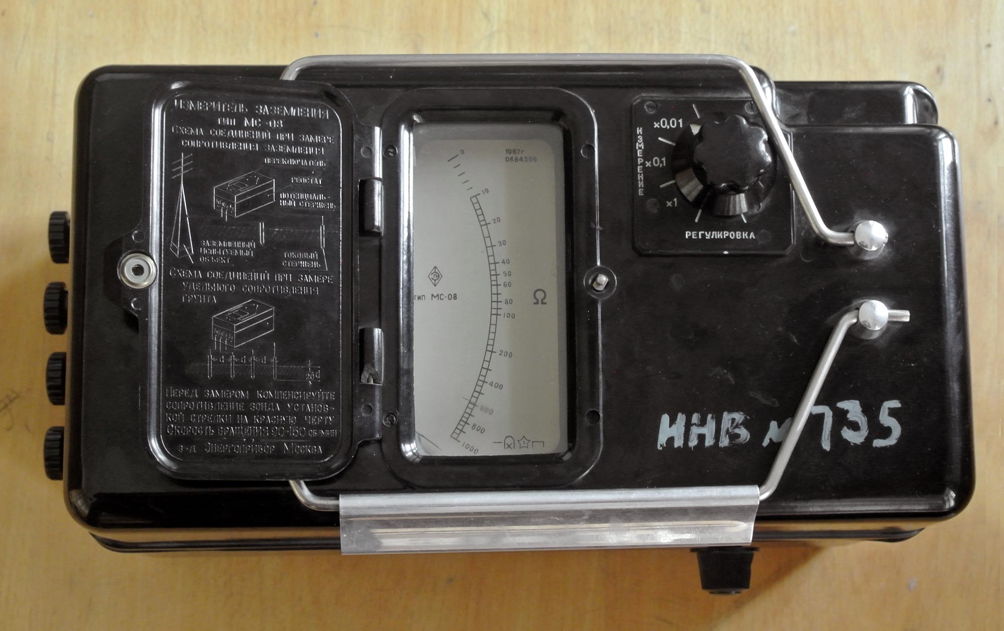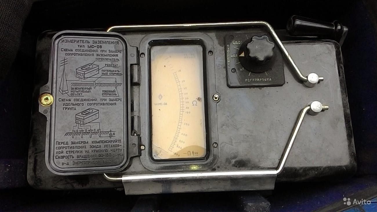 Измеритель заземления *МС-08* выпускался с 1957 года Московским заводом *Энергоприбор*. *МС-08* в своё время был основным прибором для измерений сопротивлений заземляющих устройств. Прибор имеет собственный источник питания в виде генератора, приводимого во вращение рукояткой. Наличие блуждающих токов в земле не очень искажает показания. Электрическую прочность изоляции проверяют прибором измеритель заземления *МС-08* на пределе шкалы 1000 Ом. В приборе реализован логометрический способ измерения. Прибор имеет три предела измерений: 1000, 100 и 10 Ом и специальное устройство, позволяющее компенсировать сопротивление цепи зонда, если сопротивление цепи меньше 1000 Ом.