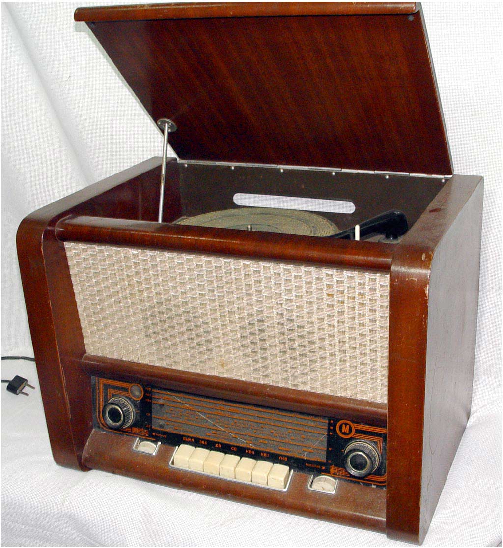 Радиола сетевая ламповая *Муромец* с 1957 года выпускалась на Муромском заводе РИП. Радиола **Муромец** создана на базе радиолы **Байкал** Бердского радиозавода и по конструкции и электрической схеме совпадает с ней. Радиола производилась для увеличения числа наименований бытовой радиоаппаратуры в стране. Радиола имеет шестиламповый приёмник 2-го класса, совмещённый с универсальным двухскоростным электропроигрывателем в общем футляре. Внешнее оформление радиолы **Муромец** незначительно от личается от базовой радиолы **Байкал**. В радиоле **Муромец** вместо громкоговорителей 1ГД-5 с 1959 года устанавливали громкоговорители типа 2ГД-3 или 2ГД-3Р, при этом диапазон частот при проигрывании пластинок и при приёме в ЧМ расширился до 80...8000 Гц. Потребляемая мощность при работе ЭПУ - 70 Вт. Габариты радиолы 340хх520х368 мм. Её масса 19 кг. Цена модели 87 рублей 95 копеек после денежной реформы 1961 года.