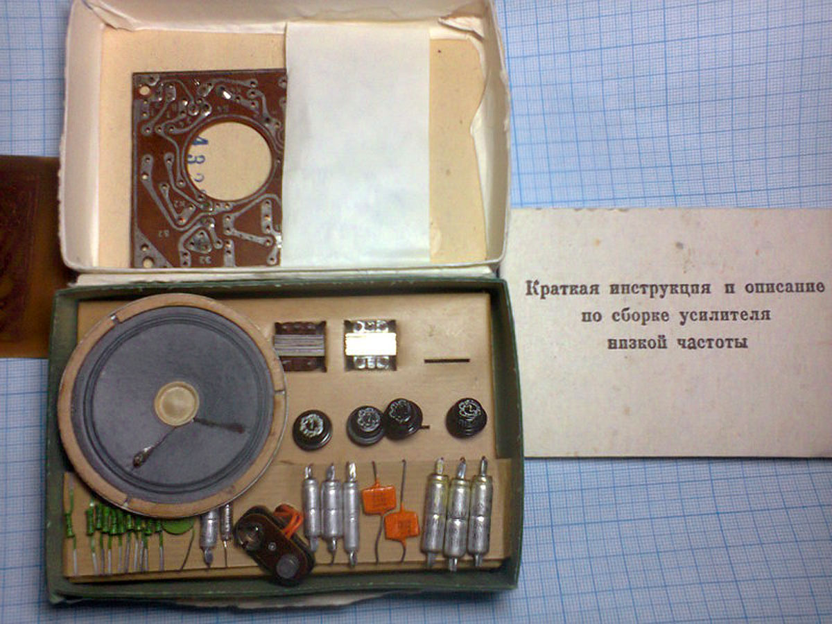 Набор для радиолюбителя *Усилитель низкой частоты* предположительно с 1964 года выпускал Лианозовский ЭМЗ. Усилитель предназначен для совместной работы с магнитофоном, электропроигрывателем, имеющим пьезоэлектрический звукосниматель, а так же с высокочастотной частью самодельного транзисторного радиоприёмника. Корпус мог быть изготовлен отдельно или использоваться общий, с перечисленными устройствами. Максимальная выходная мощность усилителя составляла 150 мВт. Диапазон воспроизводимых частот 450...3150 Гц. В зависимости от размеров корпуса нижний показатель мог быть выше и начинаться с 280...300 Гц. Питание 9 вольт от батареи *Крона* или от других элементов соединённых последовательно, что бы общее напряжение составляло 9 вольт.