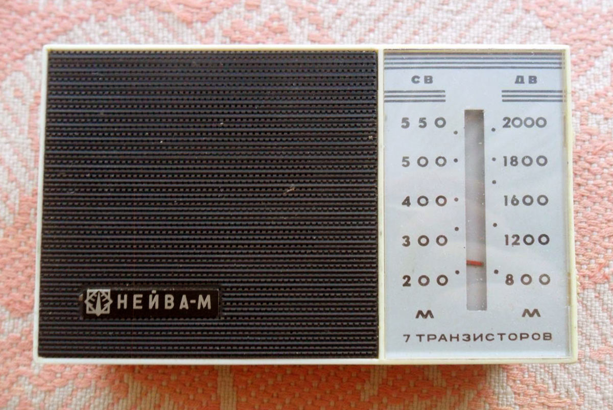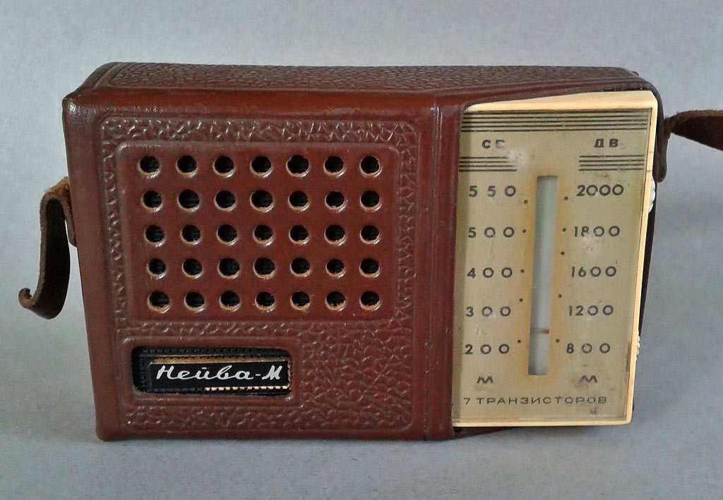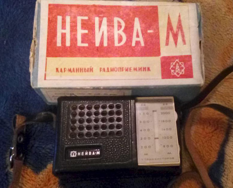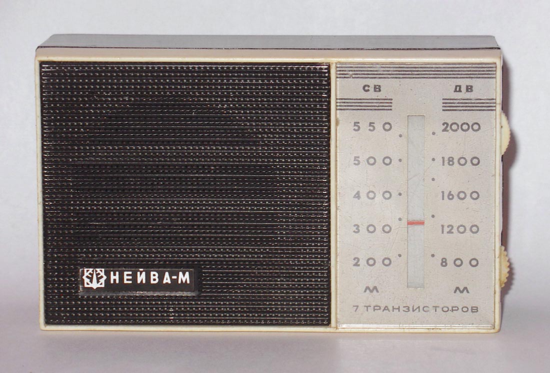Портативный радиоприёмник *Нейва-М* с 1967 года выпускал Каменск-Уральский приборостроительный завод. Радиоприёмник четвёртого класса **Нейва-М** предназначен для приёма радиовещательных станций на магнитную антенну в диапазонах ДВ, СВ. Он выполнен на семи транзисторах и одном п/п диоде. Hoминaльнaя выходная мощность 60 мВт. Чувствительность на внутреннюю антенну в диапазоне ДВ - 1,5, СВ - 1,0 мВ/м. Избирательность по соседнему каналу на ДВ - 20, СВ - 16 дБ. Ослабление по зеркальному каналу на ДВ - 26, СВ - 20 дБ. ПЧ 465 кГц. АЧХ НЧ тракта по звуковому давлению в диапазоне 450..3000 Гц и имеет неравномерность 14 дБ. Ток покоя 6 мА. Питание осуществляется от батареи Крона-ВЦ. Приёмник сохраняет работоспособность при снижении напряжения до 5,6 В. Для внешней антенны и телефона имеются гнёзда. Размеры модели - 113х70хх34 мм, масса с батареей и футляром 330 гр.