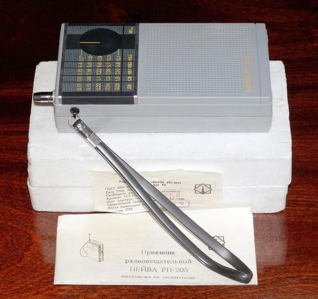 Портативный радиоприёмник *Нейва РП-205* с 1990 года выпускал Каменск-Уральский приборостроительный завод. **Нейва РП-205** это пятидиапазонный ДВ, СВ и КВ (3 поддиапазона) переносной радиоприёмник, являющимся копией приёмника **Нейва-305**. В радиоприёмнике **Нейва РП-205** в диапазонах ДВ, СВ приём производится на магнитную антенну, а в КВ на встроенную телескопическую. В тракте ПЧ могли стоять контурные фильтры или пьезокерамический фильтр, в зависимости от этого чувствительность в диапазоне ДВ была 1 мВ/м, СВ 0,8 мВ/м, в поддиапазонах КВ 250 мкВ. С пьезо-фильтром чувствительность была ниже и составляла в диапазоне ДВ 2,5 мВ/м, СВ 1,5 мВ/м, в поддиапазонах КВ 450 мкВ. Селективность составляла соответственно 20 дБ и 30 дБ. Номинальная выходная мощность 100 мВт, а максимальная 200 мВт. Питание приёмника универсальное, от четырёх элементов А-316, от батареи типа *Крона*, что не приветствовалось или от внешнего 6-ти вольтового блока питания. Первоначальная цена радиоприёмника 61 рубль 80 копеек, затем в 1991 году она была повышена до 86 рублей 80 копеек, это было связано с начинающимися в стране инфляционными процессами. В 1992 году выпуск радиоприёмника **Нейва РП-205** был прекращён.