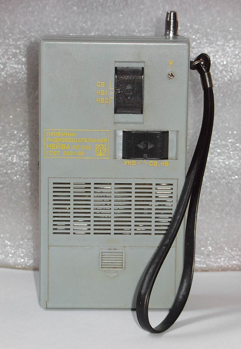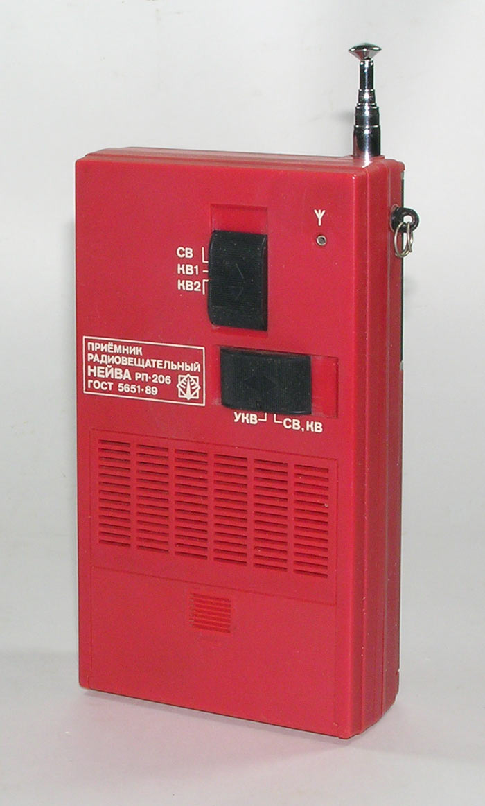 Портативный АМ/ЧМ радиоприёмник *Нейва РП-206* с 1994 года выпускало Каменск-Уральское ПО *Октябрь*. Радиоприёмник *Нейва РП-206* обеспечивает приём радиостанций в диапазонах СВ на встроенную магнитную антенну, в диапазонах КВ и УКВ на телескопическую. Есть возможность подключения внешней антенны и миниатюрного телефона. Питание приёмника осуществляется от 4-х батарей А-316 общим напряжением 6 В или от внешнего источника питания через специальное гнездо. Основные характеристики: Диапазон волн (частот) СВ, КВ - 25 м, КВ - 31 м, ЧМ 65...75 МГц или FM 88...108 МГц (экспортный вариант). Номинальная выходная мощность 100 мВт. Чувствительность в СВ - 1,5 мВ/м, КВ - 450 мкВ, УКВ - 100 мкВ. Габаритные размеры приёмника 177х96х39 мм. Его масса без батарей 370 грамм. С 2000 года радиоприёмник *Нейва РП-206* выпускался с разным оформлением передней панели, приуроченным к различным знаменательным и юбилейным датам.