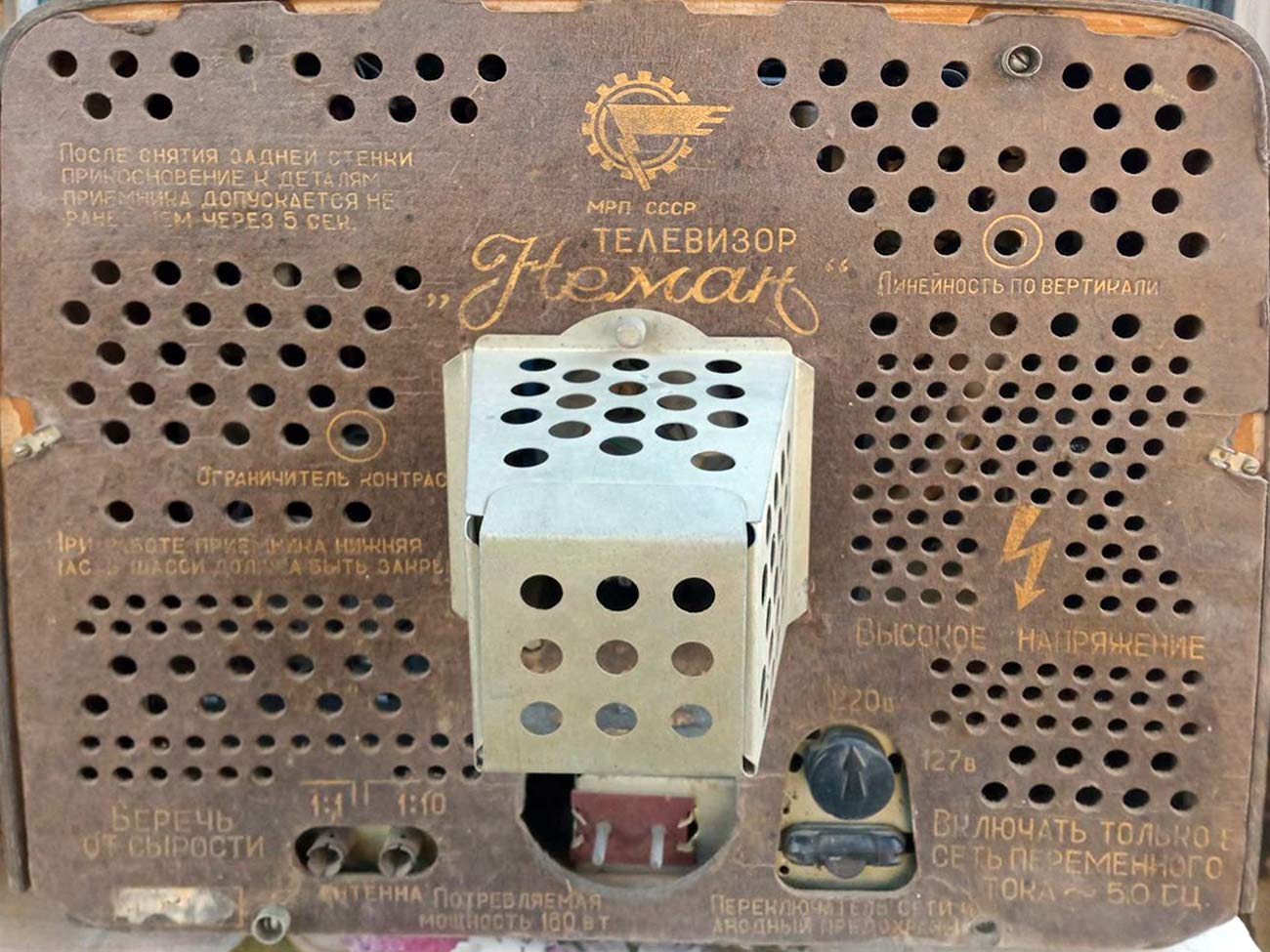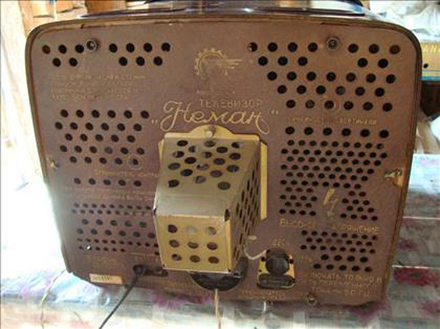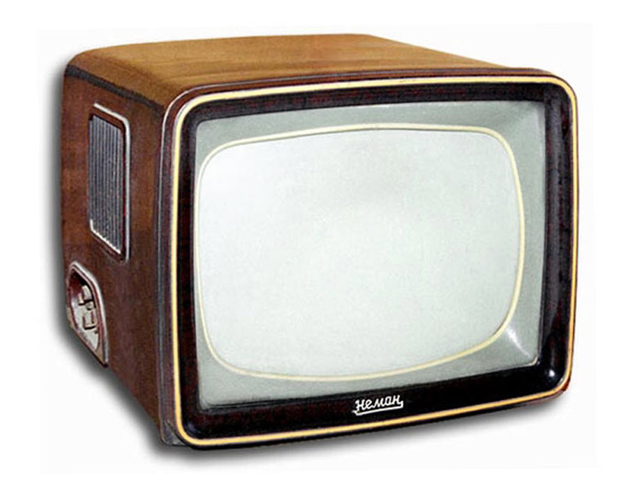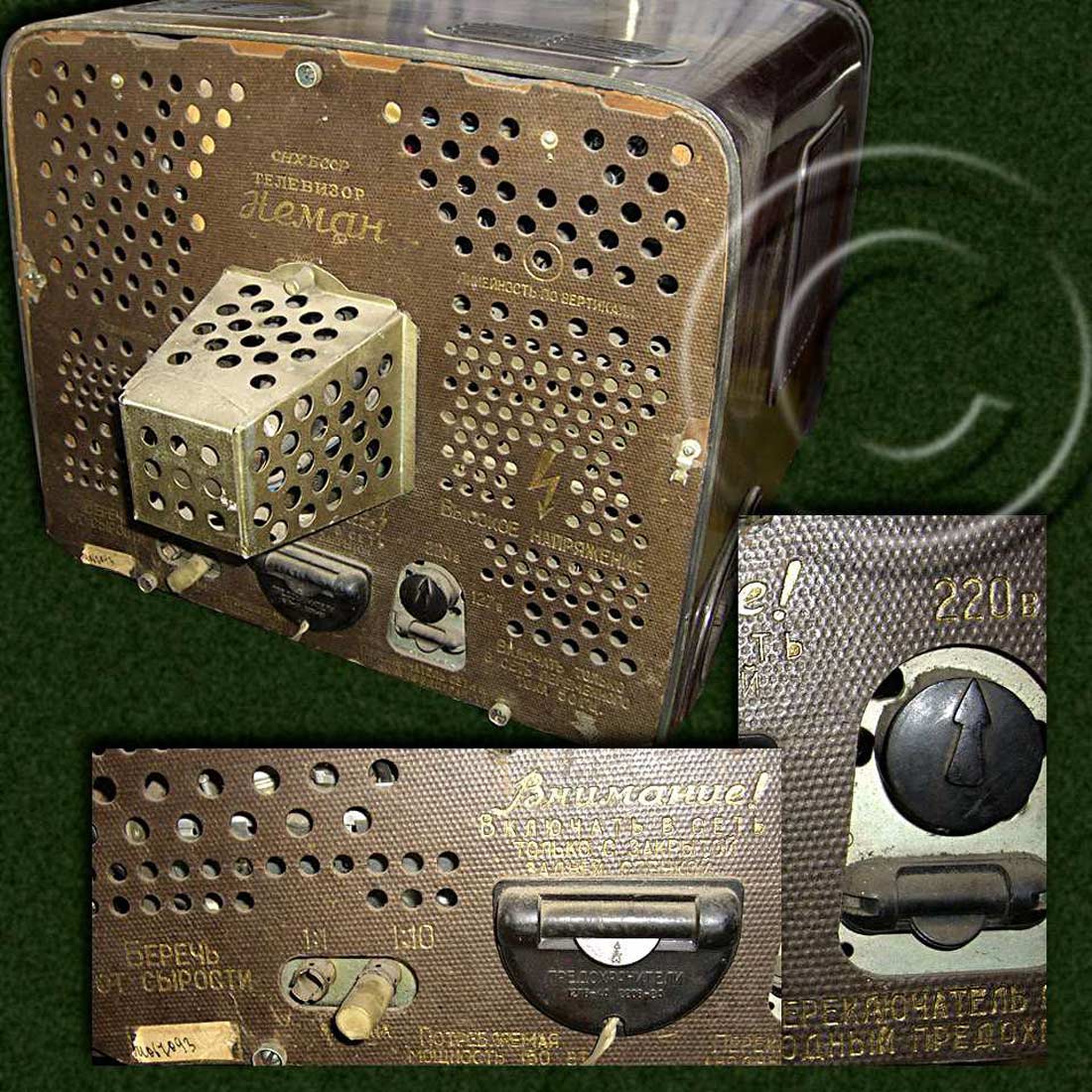 Телевизор *Неман* с 1959 года выпускал Минский радиозавод. 12-ти канальный телевизор **Неман** создан на базе телевизора *Воронеж* и так же выпускался в трёх вариантах, отличаясь весом, оформлением и кинескопами. В модели **Неман** - 35ЛК2Б, **Неман-2** - 43ЛК3Б (стеклянной), **Неман-3** - 43ЛК2Б (метало-стеклянной). По схеме и конструкции модели одинаковы. Вес 1-й модели 23 кг, 2-й и 3-й - 26 кг. Футляр изготовлен из фанеры ценных пород дерева или имитации, переднюю часть занимает экран кинескопа и металлическая крашенная вставка. Обрамление для кинескопа и щитки для ручек управления выполнены из пластмассы. В моделях применено 14 радиоламп и 11 диодов. Размеры любого из телевизоров 445х380х430 мм. Телевизор питается от электросети 127 или 220 вольт, потребляя мощность около 150 Вт. Размер изображения в первой модели 210х280 мм, во второй и третьей соответственно больше. Чувствительность в 200 мкВ обеспечивает приём на наружную антенну в радиусе до 70 км от студии. Громкоговоритель типа 1ГД-9 расположен справа футляра, а для улучшения звука на левой стенке сделан вырез. Громкость достаточна для озвучивания средней комнаты. В модели применены автоматические регулировки АРУ и АПЧ и Ф. Основные ручки для управления выведены на правую боковую стенку футляра в нишу, вспомогательные в нишу слева. Монтаж деталей печатный. Цена 1-й модели с отделкой ценными породами дерева 300 рублей, с имитацией ценных пород 288 рублей (1961 г). Третий вариант телевизора **Неман** выпущен значительной серией, около 4-х миллионов экземпляров. Завершил завод выпуск телевизора **Неман-3** в 1968 году. Радио №11/1965, ст.33