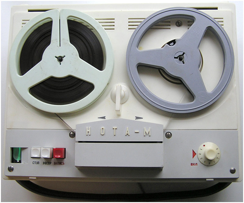 Магнитофонная приставка *Нота-М* с I-кв 1969 года выпускалась Новосибирским электромеханическим заводом. Магнитофонная приставка **Нота-М** это модернизация серийной приставки **Нота**. Новая приставка имеет более современный футляр из железа, обклеенный цветным пластиком и несколько изменённую верхнюю панель, другую форму клавиш и ручки управления. Магнитофонная приставка является дополнением к бытовому радиоприёмнику, телевизору или усилителю низкой частоты и в сочетании с ними превращается в высококачественный магнитофон. Все характеристики МП в инструкции.