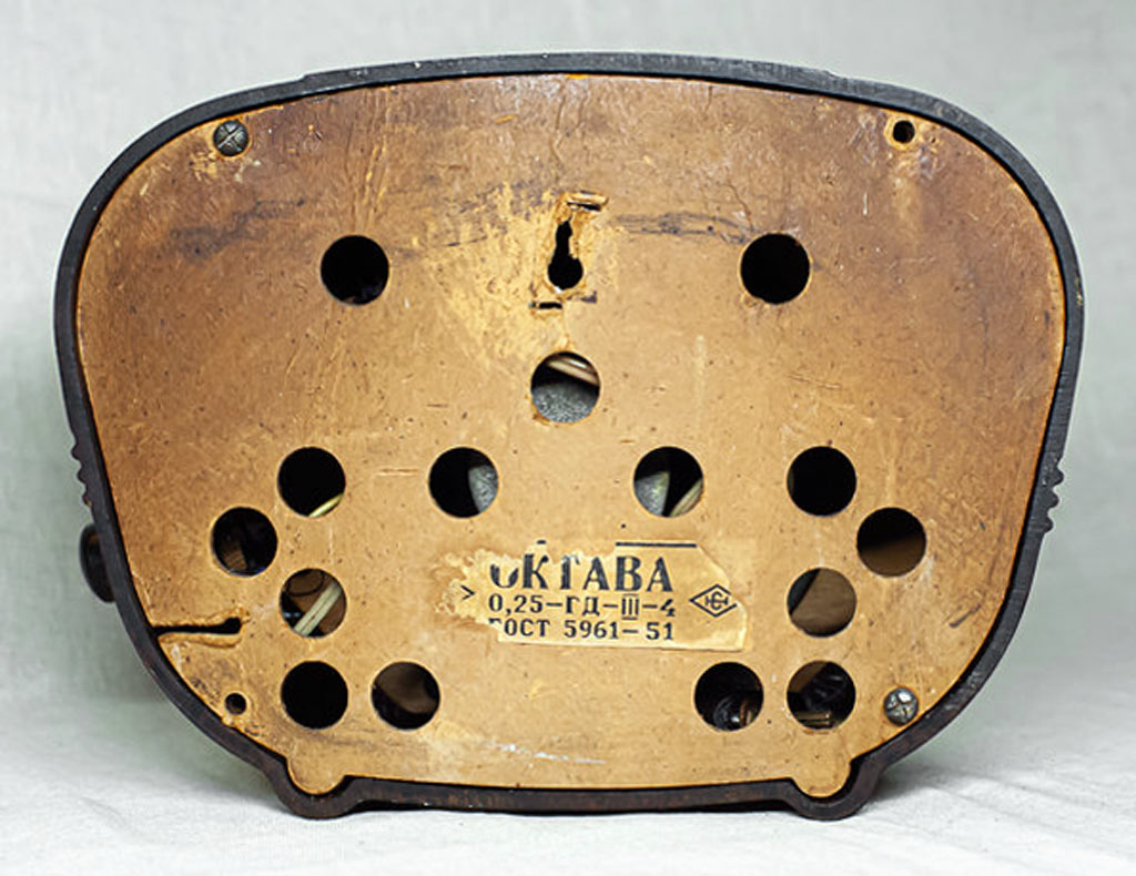 Радиоприёмник и радиола сетевые ламповые "Октава" с 1957 и 1958 года выпускались на Горьковском заводе им. В.И.Ленина. Радиоприёмник представляет собой семиламповый супергетеродин 1-го класса настольного типа. В нём применено 6 пальчиковых и 1 октальная радиолампа. Диапазоны: ДВ, СВ, КВ1 8,85...12,1 Мгц, КВ2 3,95...7,5 Мгц. Диапазон УКВ стандартный. ПЧ = 465 Кгц и 8,4 Мгц. Чувствительность 200 мкВ в АМ и 20 мкВ в ЧМ тракте. Избирательность - 36...46 дБ АМ тракта и 26 дБ в ЧМ. Приёмник имеет внутреннюю магнитную антенну для приёма АМ и встроенный диполь для приёма УКВ. Номинальная выходная мощность 2 Вт, максимальная 4. Диапазон воспроизводимых частот 80...4000 Гц в АМ и 80...10000 Гц в ЧМ. Потребляемая мощность 60 Вт. В АС приёмника и радиолы применены громкоговорители: 2ГД-3 - 2 шт. и 1ГД-9 - 2 шт. Радиола по конструкции и электрической схеме не отличается от приёмника, но дополнена универсальным 2-х скоростным ЭПУ. Диапазон частот при воспроизведении грамзаписи такой же как при радиоприёме в УКВ-ЧМ, а потребляемая мощность при этом увеличивается до 75 Вт. Размеры радиоприёмника или радиолы: 510х354х295 / 580х406х330 мм, масса соответственно 11,5 и 19 кг. Усовершенствование (Радио№11/1960 ст.27)