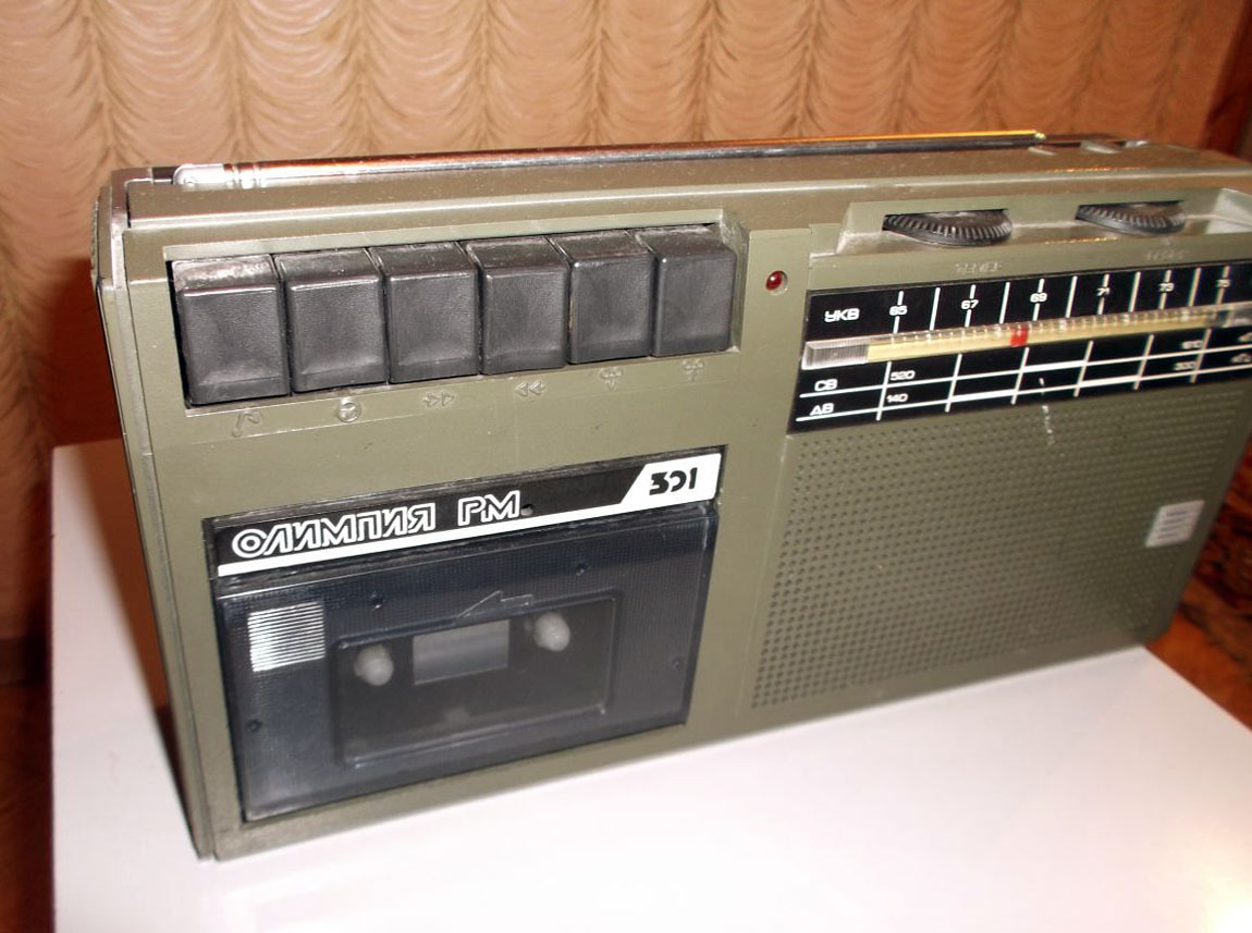 Переносная кассетная магнитола *Олимпия РМ-301* выпускалась с 1989 года Светловодским радиозаводом. Предназначена для приёма в диапазонах ДВ, СВ и УКВ и для записи и воспроизведения программ со встроенного микрофона и приёмника и внешних источников сигналов с применением магнитной ленты, размешенной в кассетах МК.. Магнитола имеет АПЧ в диапазоне УКВ; АРУЗ, индикацию включения и разрядки батарей. Приём в диапазонах ДВ и СВ осуществляется на магнитную антенну, УКВ на телескопическую. Диапазоны: ДВ, СВ, УКВ. ПЧ тракта AM 465 кГц; ЧМ 10.7 МГц. Чувствительность: ДВ - 800 мкВ/м; СВ - 500 мкВ/м; УКВ - 20 мкВ/м. Избирательность по соседнему каналу в диапазонах ДВ и СВ 26 дБ. Номинальная выходная мощность - 0,2 Вт, максимальная - 0,5 Вт. Диапазон рабочих частот: АМ тракт 315...3550 Гц; ЧМ - 315...10000 Гц. Коэффициент детонации - ±0,4 %. Рабочий диапазон частот магнитофона на ЛВ - 63...10000 Гц. Источник питания - шесть элементов А-343 или сеть переменного тока. Габариты магнитолы 29бх145хбЗ мм. Вес 1,7 кг.