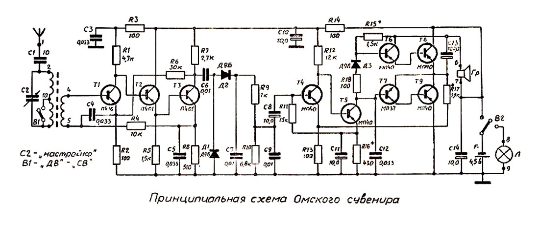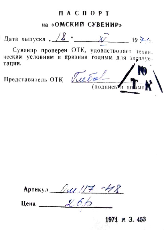 Сувенирный радиоприёмник *Омский сувенир* предположительно с 1969 года выпускал Омский приборостроительный завод имени Козицкого. *Омский сувенир* олицетворяет морской вокзал города Омска. Радиоприёмник *Омского сувенира* первоначально построен на базе сувенира *Останкинский телецентр* 1967 года выпуска и по схеме и характеристикам с ним совпадает. В процессе производства электрическая схема, конструкция и параметры *Омского сувенира* менялись. Сначала это был 6-транзисторный однодиапазонный (ДВ) вариант, с белым катером на фасаде, затем наверное с 1972 года 9-ти транзисторный двухдиапазонный (ДВ, СВ), уже без катера, а вместо него - ручка переключателя диапазонов. Питается радиоприёмник *Омского сувенира* от одной батареи типа КБС-0,5.