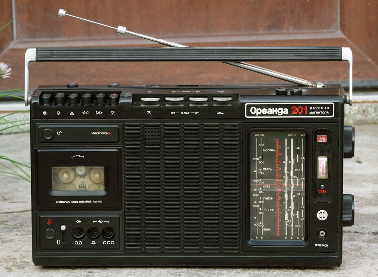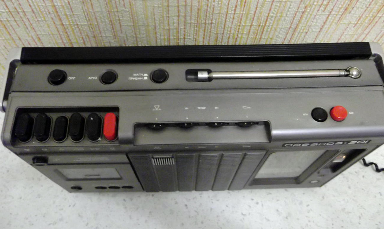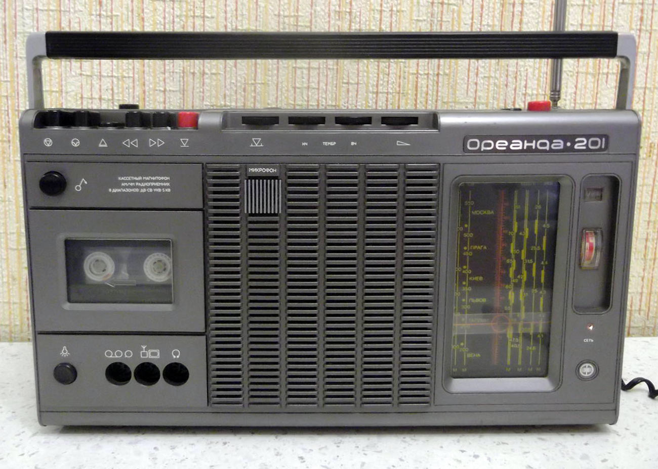 Кассетная магнитола *Ореанда-201* с 1980 года выпускалась Симферопольским заводом *Фиолент*. **Ореанда-201** - магнитола 2 класса, состоящая из радиоприёмника 2-го класса и магнитофонной панели 3-го класса. Она предназначена для приёма программ радиостанций в диапазонах ДВ, СВ, KB и УКВ, а так же для магнитной записи на кассеты МК фонограмм со встроенного и выносного микрофонов, собственного и внешнего радиоприёмников, звукоснимателя и магнитофона с последующим воспроизведением. Приём в диапазонах ДВ и СВ осуществляется на магнитную антенну, а в KB и УКВ на телескопическую. Чувствительность в диапазонах ДВ 350, СВ 150, KB 50, УКВ 8 мкВ. Селективность 40 дБ. Избирательность по зеркальному каналу в диапазонах ДВ, СВ - 46, KB - 26 дБ. Номинальная выходная мощность 500 мВт, максимальная 750 мВт. Полоса воспроизводимых звуковых частот в тракте АМ 125...4000, ЧМ 125...10000 Гц. Среднее звуковое давление в полосе воспроизводимых частот - 0,31 Па. Напряжение на линейном выходе магнитофона 250 мВ. Диапазон частот на ЛВ 80...10000 Гц. Питание 7 элементов 343 или сеть. Габариты МЛ 450х245x118 мм. Вес с батареями 5,2 кг.