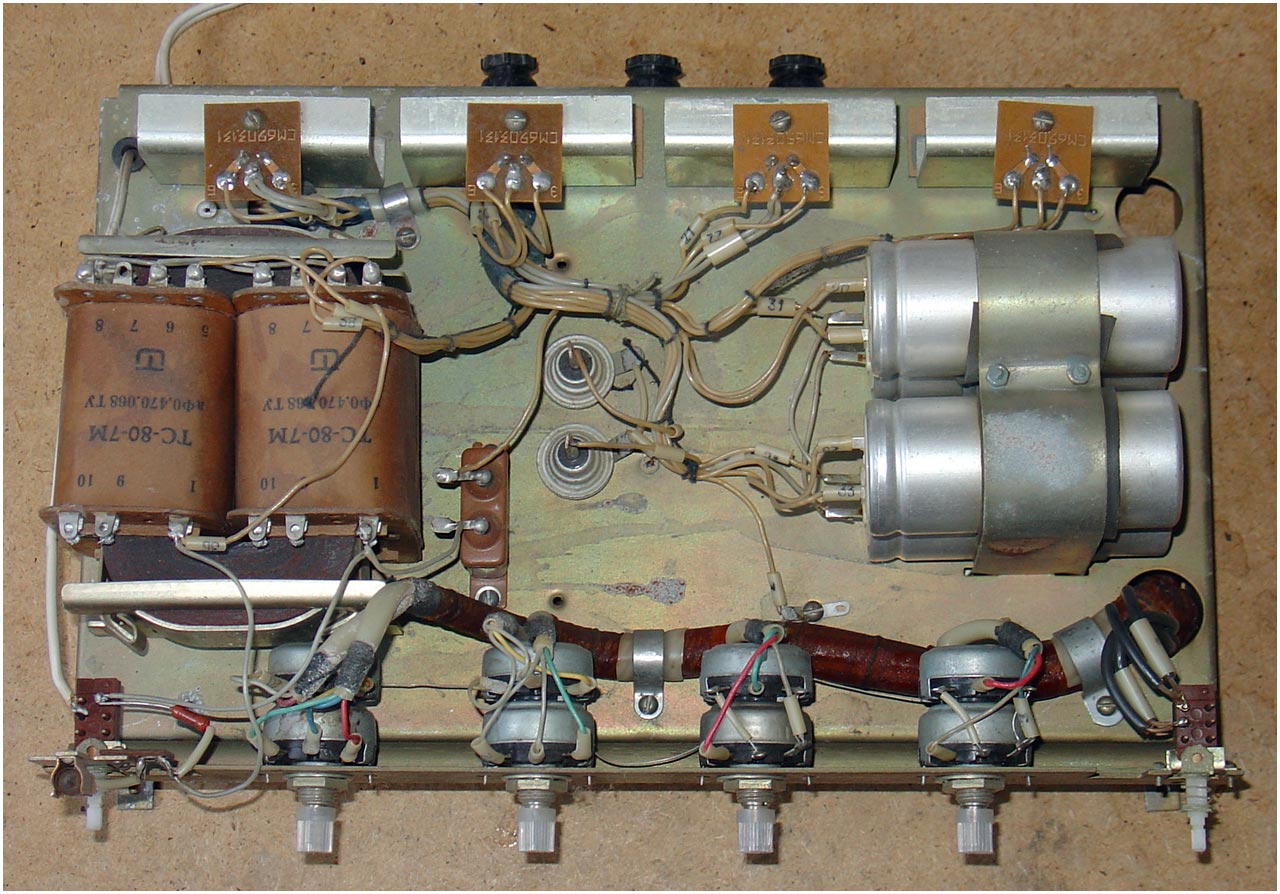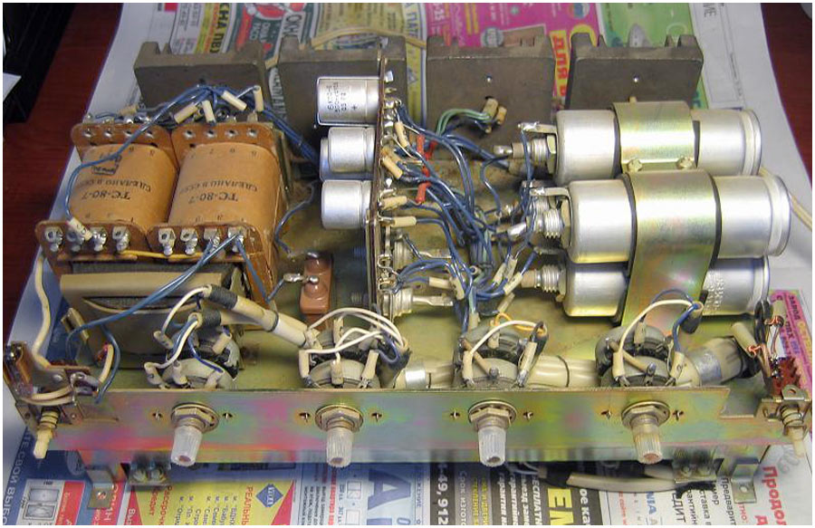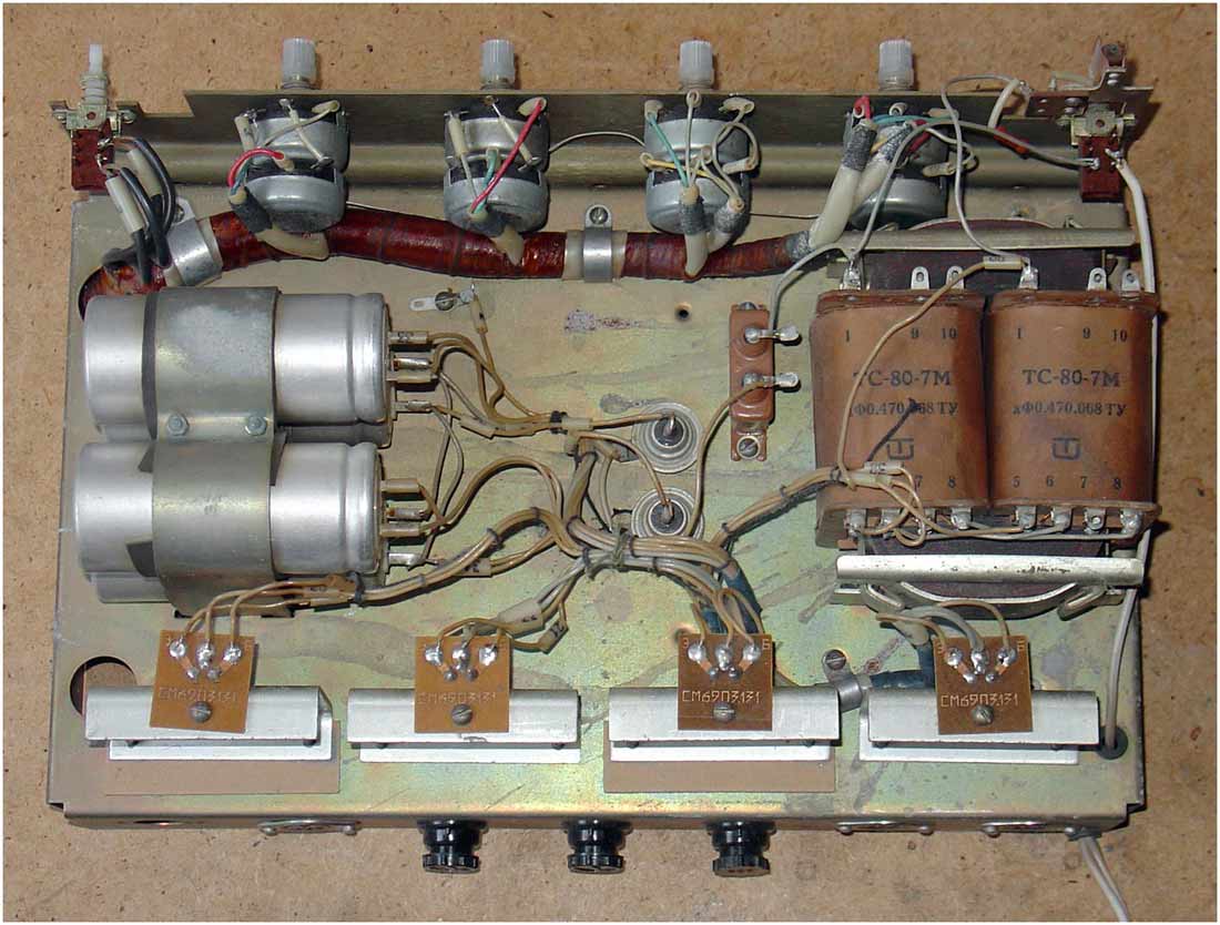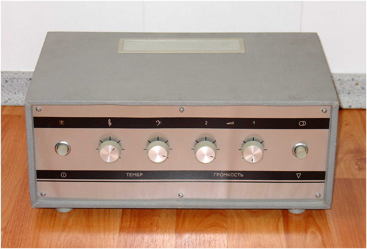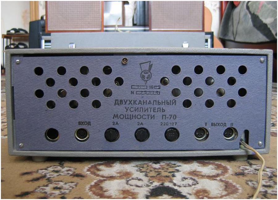 Двухканальный усилитель мощности *П-70* с 1982 года выпускал Горьковский завод имени Петровского. Двухканальный усилитель мощности **П-70** предназначен для воспроизведения моно и стереофонических фонограмм с магнитофонов **Тембр-2**, **Тембр-2С** и **Тембр-2М**. Усилитель представляет собой аппарат в настольном оформлении, размещённый в деревянном корпусе и оклеенном декоративным материалом. Усилитель комплектуется акустическими системами ВГ-2-3/16Р. Усилитель продавался и как отдельное самостоятельное устройство. В середине 1985 года усилитель **П-70** был существенно модернизирован. При прежнем оформлении была переработана электрическая схема, в соответствии с ней и конструкция. Технические характеристики: Номинальная выходная мощность усилителя 2х5 Вт, максимальная 2х9 Вт. Диапазон рабочих частот звука на выходе для АС 40...20000 Гц. Относительный уровень помех по каждому каналу -50 дБ. Диапазон регулировки темра по низким частотам +8 дБ, по высоким -10 дБ. Коэффициент искажений при номинальной мощности 3%. Потребляемая от сети мощность 120 Вт. Габариты модели - 400х250х200 мм. Вес 10 кг.