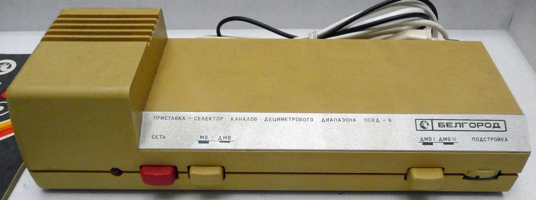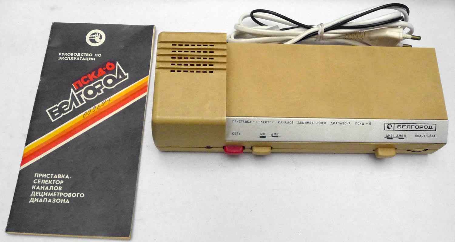 Приставка-селектор ДМВ диапазона *ПСКД-6* Белгород с 1989 года выпускалась Белгородским заводом *Сокол*. Приставка предназначена для совместной работы с телевизионными приёмниками, не имеющими встроенного дециметрового селектора (телевизионные приёмники при этом не требуют дополнительной переделки). В зоне уверенного приёма телецентра (ретранслятора) на любом из 40 телевизионных каналов дециметрового диапазона (каналы с 21 по 60) приставка обеспечивает преобразование телевизионных сигналов дециметрового диапазона в метровые (каналы 1 и 2). В зоне неуверенного приёма качество изображения и звукового сопровождения программ не гарантируется. Диапазон принимаемых частот 470..790 МГц. Выходные частоты приставки 48,5 / 66 МГц. Вход несимметричный с волновым сопротивлением 75 Ом. Потребляемая мощность 6 Вт.