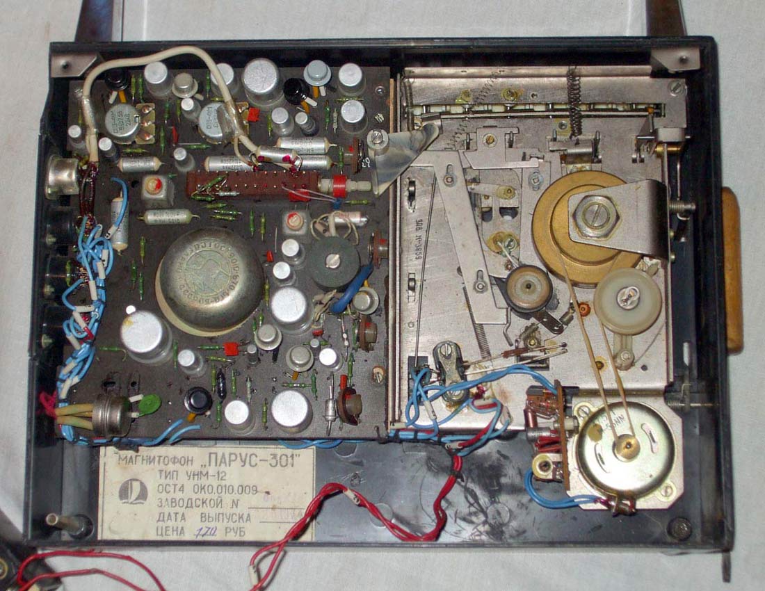 Портативный кассетный магнитофон *Парус-301* с 1972 года выпускал Саратовский завод *Знамя Труда*. По своей конструкции, схеме, механической и электрической частям, а также техническим характеристикам магнитофон аналогичен магнитофону **Электроника-301**. Выпускался с целью увеличения ассортимента кассетных магнитофонов и отличается только внешним оформлением. Чёрный полистирольный корпус модели оформлен декоративными шильдами из алюминия, с надписями и символами выполненными фотоспособом, крышка отсека кассеты сделана из чёрного полистирола с окошечком.