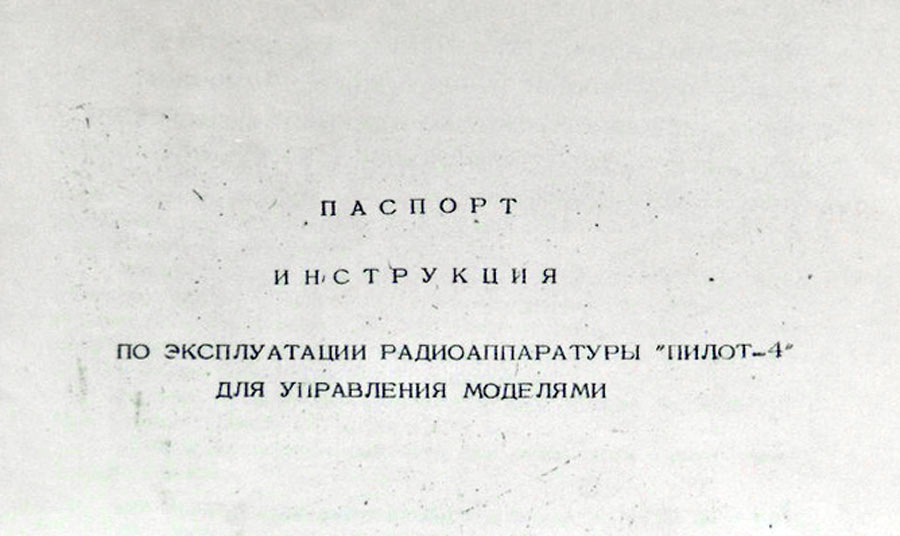 Четырёхкомандная аппаратура для управления моделями *Пилот-4* выпускалась возможно с 1975 года на Московском опытном заводе *ЦНИИКА*. Аппаратура дискретная четырехкомандная. Рабочая частота в диапазоне 27 МГц определялась частотой кварцевого резонатора задающего генератора. Питание передатчика, а также приемника и рулевых машинок, осуществляется от двух плоских батареек типа 3336Л (3R12) на 4,5 В. Антенна передатчика трехсекционная диной 109 мм. В центральной части антенны расположена удлиняющая катушка. Таким образом обеспечен более высокий КПД укороченной антенны по сравнению с телескопическими антеннами с согласующей катушкой внизу. Приемник команд сверхрегенеративный (частота самогашения 80-100 кГц), частота приема определяется параметрами контура. Рулевые машинки (исполнительные механизмы) коммутируются реле PЭC10. Аппаратура комплектовалась разными исполнительными механизмами: УРМ-1, ИМ "Старт" и ИМ-2003 Технические характеристики Частота передатчика: 27.12 МГцМощность передатчика: 300 мВтЧувствительность приемника: < 10 мкВКомандные частоты: 1500 Гц, 2300 Гц, 3200 Гц, 4700 ГцВес передатчика: 700 г (без питания)Вес приемника: 135 г (без питания)Вес рулевой машинки: 85 гТяговое усилие рулевой машинки: 270 гДальность действия: для авиамоделей - 1500 м, для авто- и судомоделей - 500 м Благодаря высокому КПД антенны аппаратура с успехом применялась для управления летающими авиамоделями (планеры) на расстоянии до 2-х километров. Испытания проводились в Планерском (Крым). Подробное описание и порядок настройки описан в статье из журнала "Моделист-конструктора" 1975 №8 и №9.