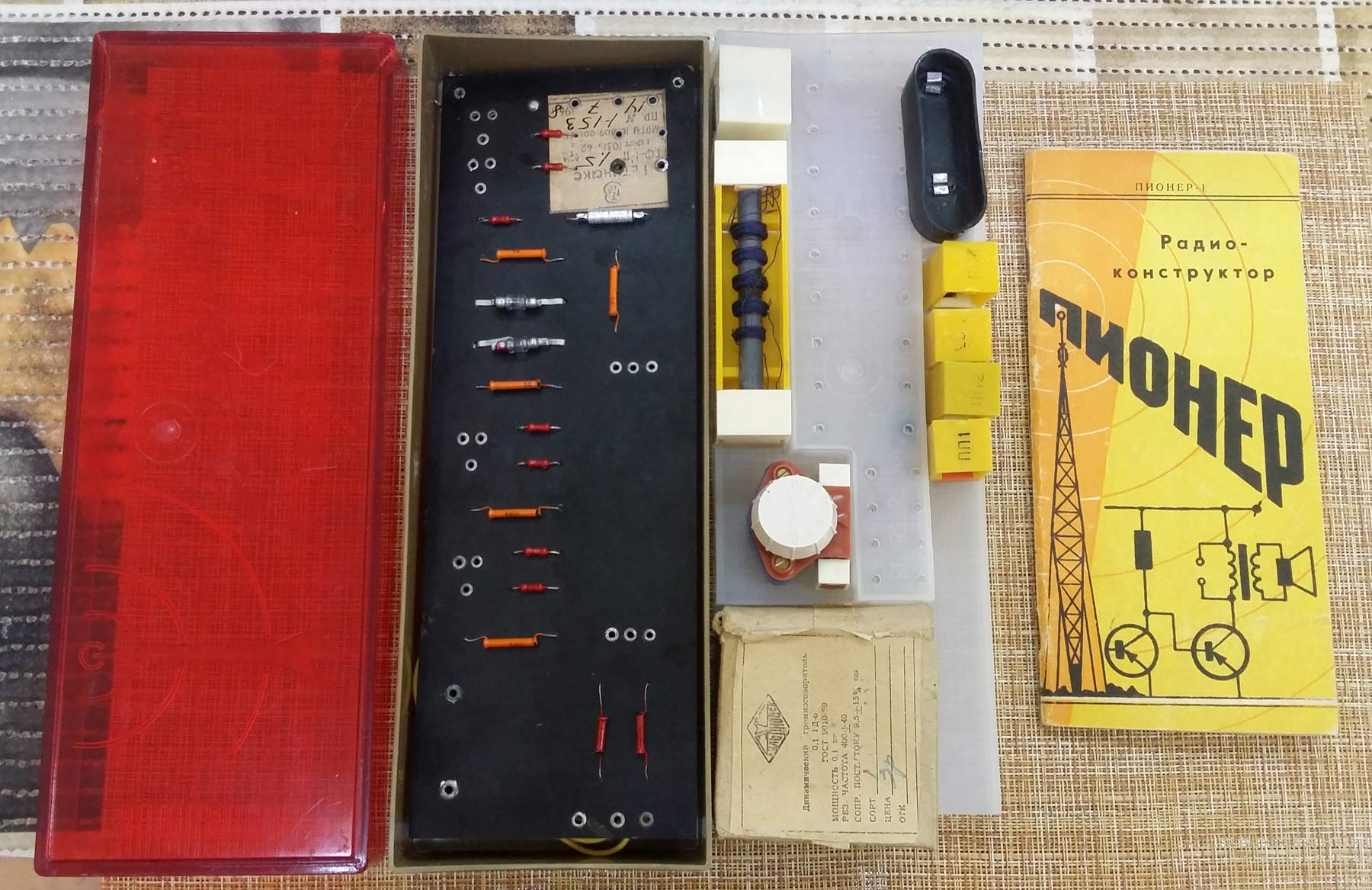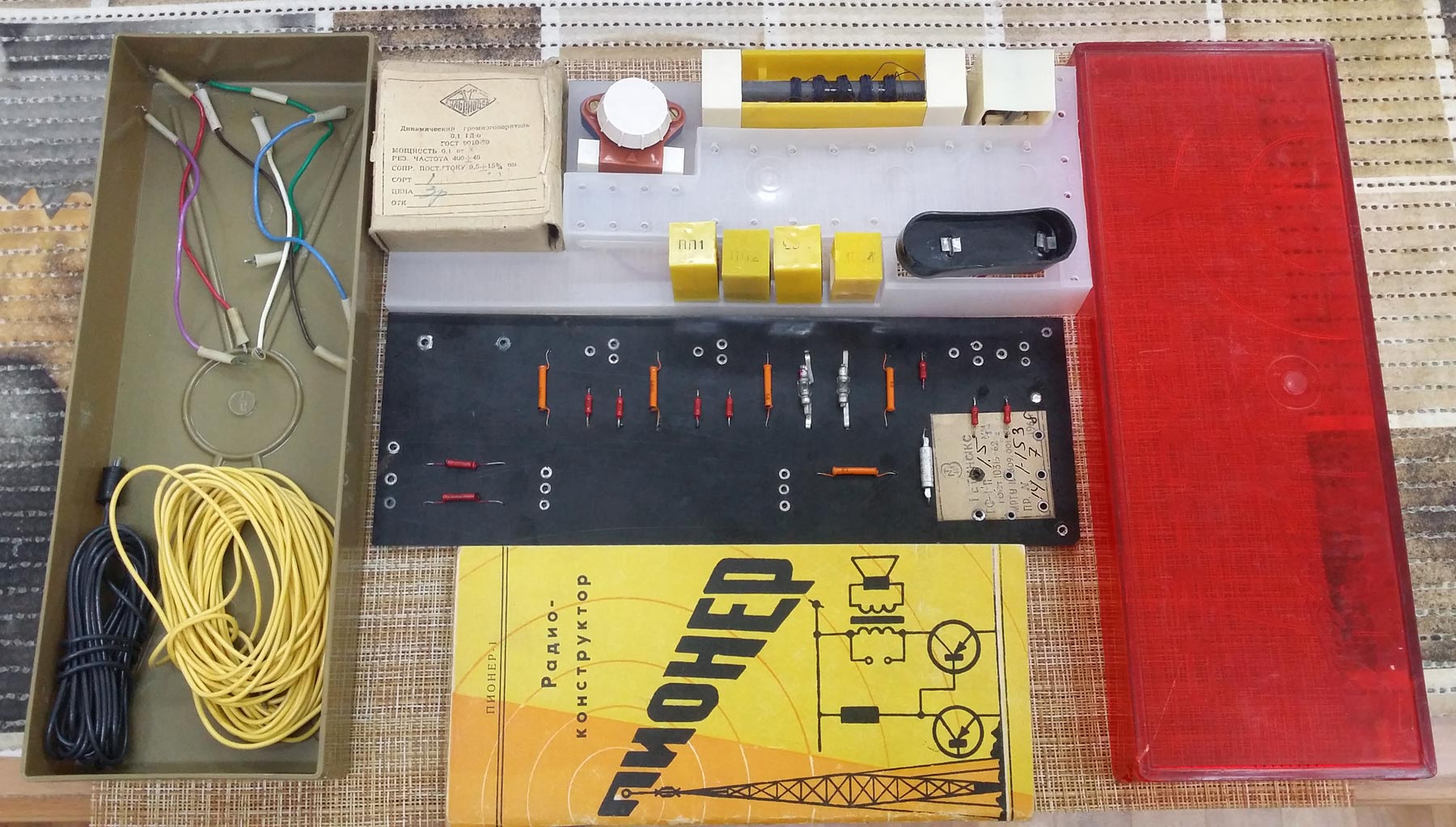 Радиоконструкторы *Пионер* и *Пионер-1* выпускали с 1968 года на Хмельницком радиотехническом заводе. Радиоконструктор *Пионер* (основная заставка) предназначен для сборки в футляре радиоприёмника прямого усиления диапазона ДВ и СВ. Радиоконструктор *Пионер-1* (фотографии внизу) предназначен для сборки без футляров более 6-ти простых радиоприёмников и двух генераторов НЧ для получения сигналов азбуки Морзе.