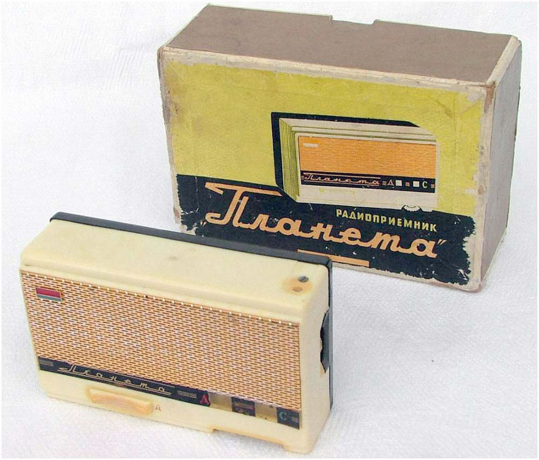Портативный радиоприёмник *Планета* с 1964 года выпускал Киевский завод *Радиоприбор*. Приёмник создан на базе модели **Киев-7** и по схеме, за исключением небольших изменений не отличается от него. Различие в конструкции и внешнем оформлении. Приёмник работает в диапазонах ДВ, СВ. Чувствительность 3 и 1,2 мВ/м. Селективность 20 дБ. Номинальная выходная мощность 60 мВт. Питание - батарея Крона или аккумулятор 7Д-01, в этом случае в комплекте ЗУ. Габариты радиоприёмника 127 х 78 х 39 мм. Вес 320 гр. В комплекте кожаный футляр.