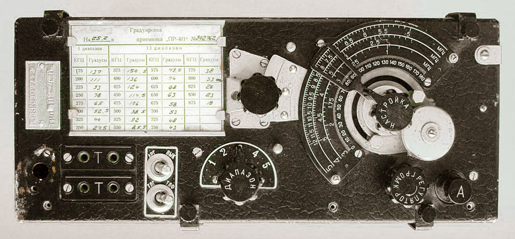 Радиоприемник *ПР-4П* выпускался предположительно с 1957 года несколькими предприятиями страны. Приёмник авиационный, но применялся и как связной. Это супергетеродин с одним преобразованием частоты. ПЧ - 112 кГц. Диапазон частот: 175 кГц – 12 МГц, разбит на 5 поддиапазонов. Чувствительность 10 мкВ в ТЛФ и 4 мкВ в ТЛГ. Избирательность по соседнему каналу превышает 90 дБ. Питание радиоприёмника осуществлялось от умформера на 27 В, обеспечивая напряжение 200 В для питания анодов и 6,3 В для питания накала.