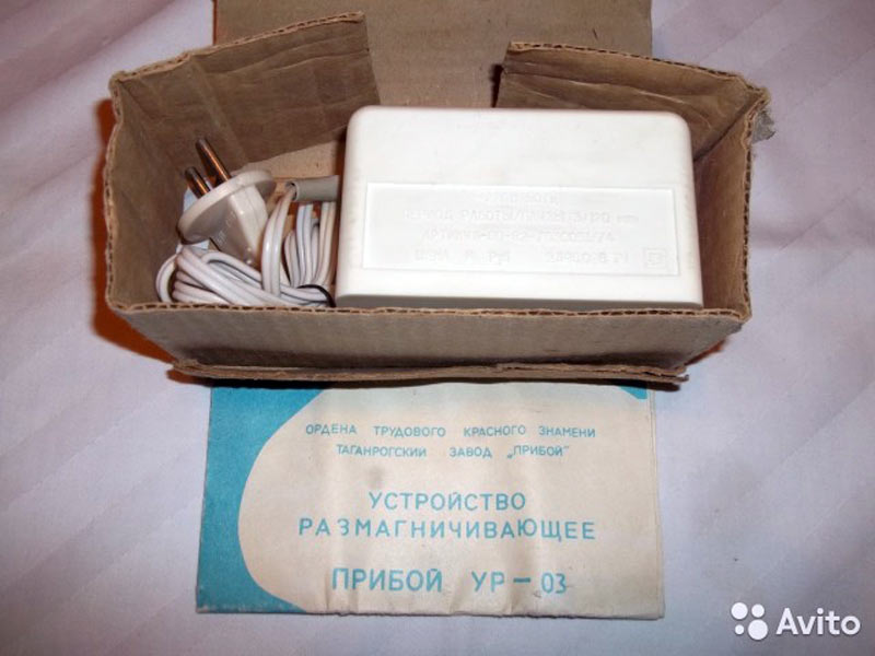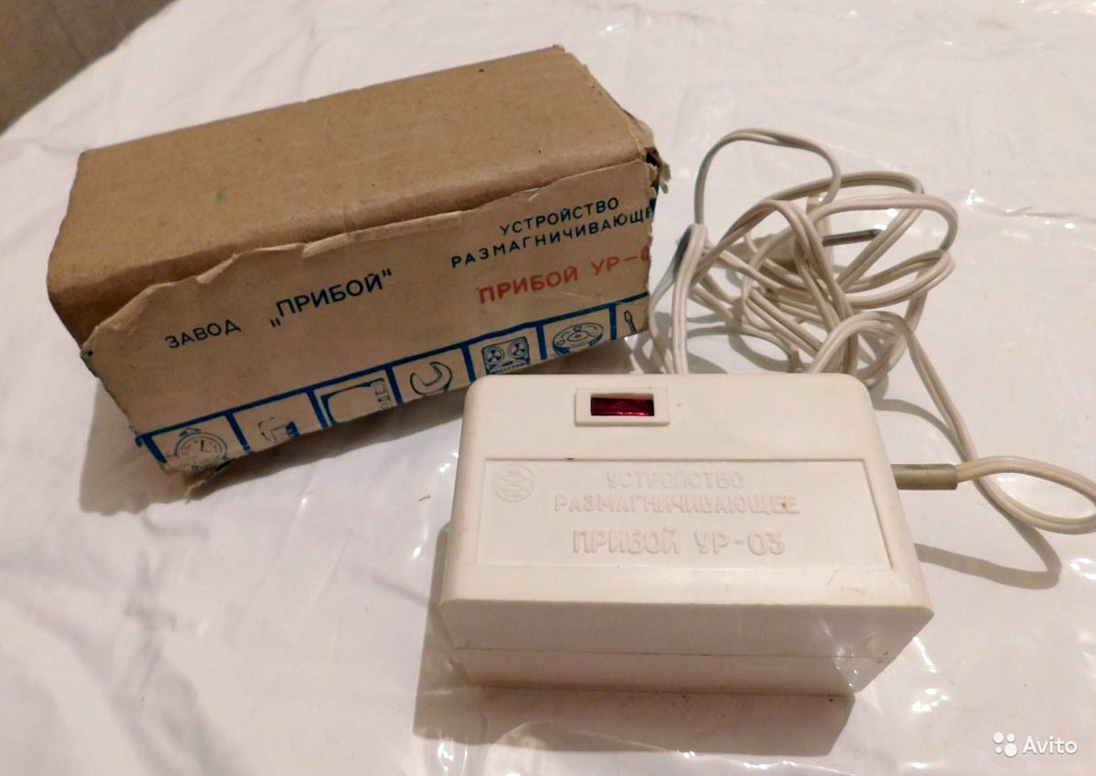 Устройство размагничивающее *Прибой УР-03* выпускалось с I-кв 1987 года Таганрогским заводом *Прибой*. Устройство размагничивающее *Прибой УР-03* предназначено для размагничивания экранов цветных телевизоров, лентопротяжных механизмов магнитофонов, магнитных лент в катушках и кассетах, магнитных головок, механических наручных часов, различных инструментов и любых устройств намагничивающихся в процессе их работы.