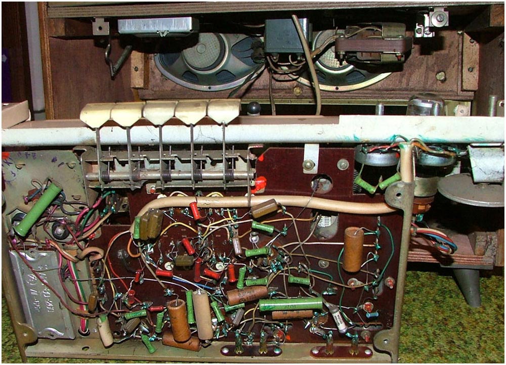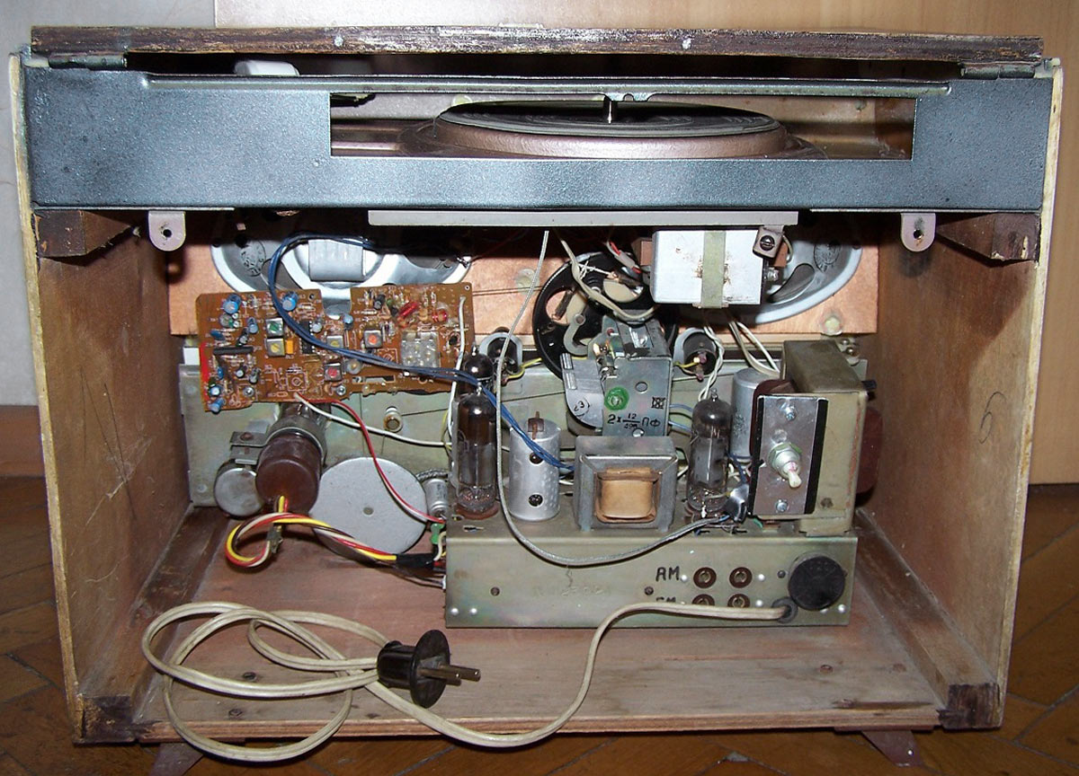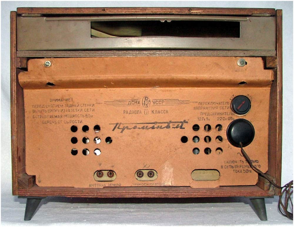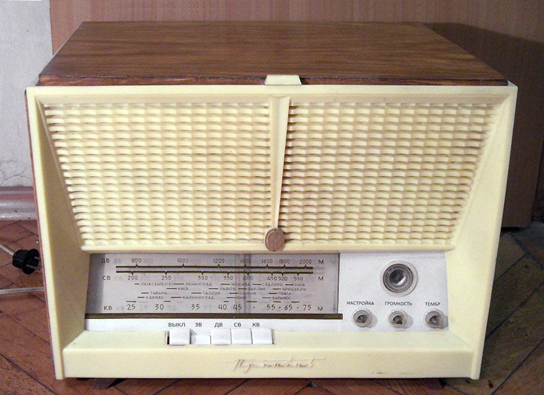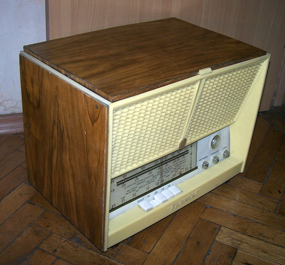 Радиолы сетевые ламповые *Проминь*, *Проминь-2* и *Проминь-М* с 1963, 1964 и с 1965 года выпускались Днепропетровским радиозаводом. Радиола третьего класса **Проминь** представляет собой четырёхламповый радиоприёмник объединённый с универсальным 3-х скоростным электропроигрывающим устройством ЭПУ-5. Диапазоны: ДВ 150...408 кГц, СВ 520...1600 кГц и обзорный КВ 3,95...12,1 мГц. Чувствительность в диапазонах ДВ, СВ 200 мкВ, КВ 300 мкВ. ПЧ 465 кГц. Селективность по соседнему каналу 30 дБ. Номинальная выходная мощность усилителя 0,5 Вт. Диапазон воспроизводимых частот при приёме 150...3500 Гц а при прослушивании грамзаписи 150...5000 Гц. Потребляемая мощность 45 Вт при приёме и 60 Вт при проигрывании пластинок. Акустическая система радиолы состоит из двух громкоговорителей типа 1ГД-9. Габариты радиолы 440х260х320 мм. Вес 11 кг. С 1964 года завод выпускал радиолу **Проминь-2**, сходную по конструкции и внешнему виду с описанной, но уже с диапазоном УКВ вместо КВ. Была переработана электрическая схема, из-за чего повысилась чувствительность АМ тракта, а полоса воспроизводимых частот возросла до 100...4000 Гц при приёме в АМ диапазонах и 100...7000 Гц при приёме в ЧМ и прослушивании грамзаписи. В 1965 году радиола модернизирована в модель **Проминь-М**. Из-за невысокой чувствительности в диапазоне УКВ, малочисленности станций и ограниченности их радиуса действия, модели опять вернули обзорный диапазон коротких волн. Схема модели снова была переработана, в АС применены новые громкоговорители 1ГД-28, многие параметры модели стали соответствовать ГОСТу на приёмники 2-го класса. Внешний вид, габариты и вес радиолы за мелкими исключениями фальшпанели практически не изменился. Цена на радиолу *Проминь-2* была 69 рублей.