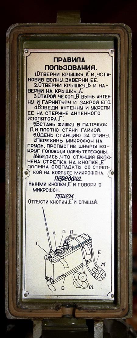Радиостанция *Р-116* (Ландыш) выпускалась с 1950 года. *Р-116* переносная, армейская, ранцевая, 10 канальная, симплексная УКВ радиостанция диапазона 6,17...5,85 м. Радиостанция собрана по трансиверной схеме. Приёмник собран по схеме прямого усиления и имеет 3 каскада: УВЧ, сверхрегенеративный детектор, УНЧ. Функции усилителя ВЧ и НЧ сигналов выполняет одна и таже радиолампа 2Ж27П. При передаче с помощью соответствующих переключений каскад сверхрегенеративного детектора превращается в задающий генератор. Этот каскад работает на лампе 2Ж27П. Амплитудная модуляция производится в выходном каскаде, собранном на лампе 2П29П. В комплект радиостанции входия гибкая штыревая антенна Куликова высотой 0,95 м и штыревая антенна высотой 1,45 м. Дальность уверенной двухсторонней связи на штыревую антенну высотой 1,45 м с однотипной радиостанцией до 1 км. Работоспособность беспоисковость и бесподстроечность связи, сохраняются как при нахождении радиостанций в одинаковых температурных условиях в пределах +50 -40° C. Питание радиостанции осуществляется от сухой, комбинированной анодно-накальной батареи **БАНСС-18М**. Основные характеристики: Диапазон частот 48,65 - 51,35 MHz (10 каналов, шаг 300 Hz). Модуляция АМ. Установка частоты - переключатель на 10 положений. Чувствительность приёмника 6 мкВ. Выходная мощность передатчика около 60 мВт. Время непрерывной работы 12...18 часов (при соотношение приём/передача 3:1). Габариты радиостанции 310х325х170 мм; её масса 4,2 кг.