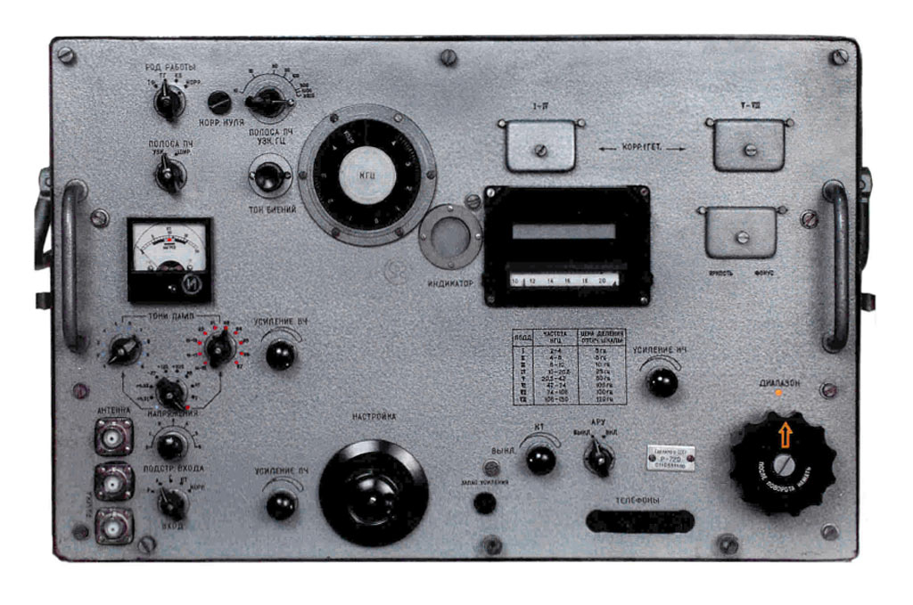 Радиоприёмник для ВМФ *Р-720* (Трап) выпускался с 1966 года в Харькове. Радиоприёмник *Р-720* предназначеня для круглосуточного слухового приёма телефонных и телеграфных сигналов в диапазоне 2...150 кГц, разбитом на 8 поддиапазонова также приёма специальных видов передач при наличии промежуточных и оконечных устройств. Приёмник может работать либо автономно при поиске и перехвате радиопередач, либо совместно с панорамным устройством *Р-713*. Чувствительность не менее 0,2 мкВ. Питание от сети переменного тока через БП и отдельный стабилизатор.