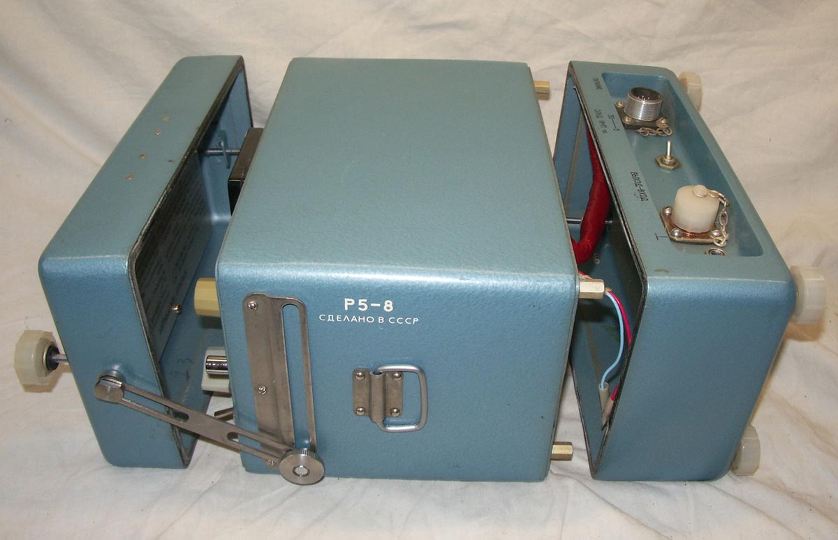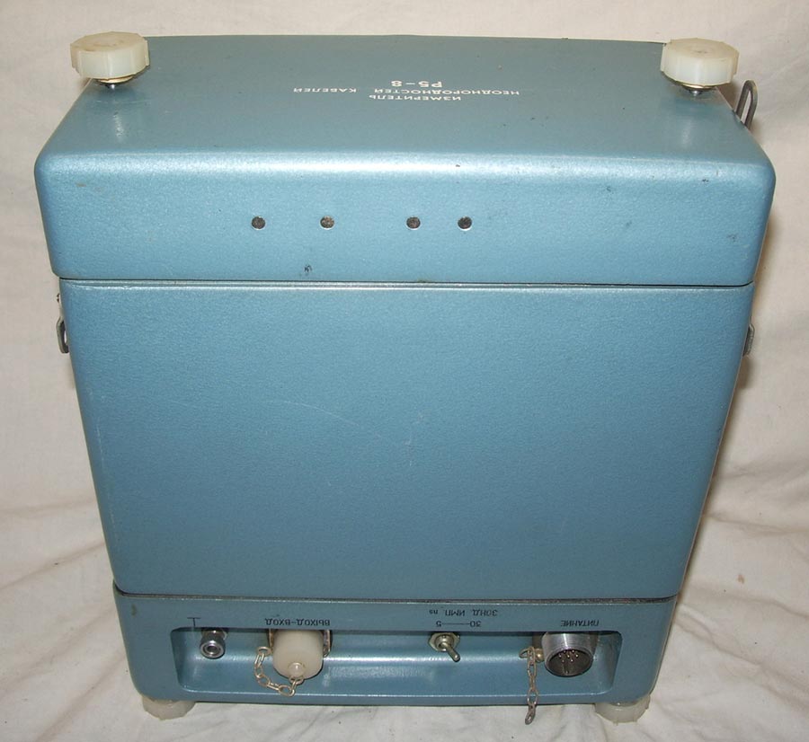 Измеритель неоднородностей кабеля *Р5-8* выпускался предположительно с 1970 года. Предназначен для обнаружения неоднородностей волнового сопротивления в кабелях, определения расстояния до дефекта. Измеряемые расстояния: 0...2000 м. Диапазон временной задержки: 0....20 мкс. Минимальное расстояние 0,5...0,6 м. Питание от сети переменного тока частотой 50 Гц (400 Гц), напряжением 220 В или от встроенного источника питания (батареи аккумуляторов), обеспечивающего непрерывную работу в течение 3 часов. Потребляемая мощность: 20 ВА от сети переменного тока; 4 Вт от 12,6 В. Габариты прибора 125x245x270 мм. Масса 5,5 кг.