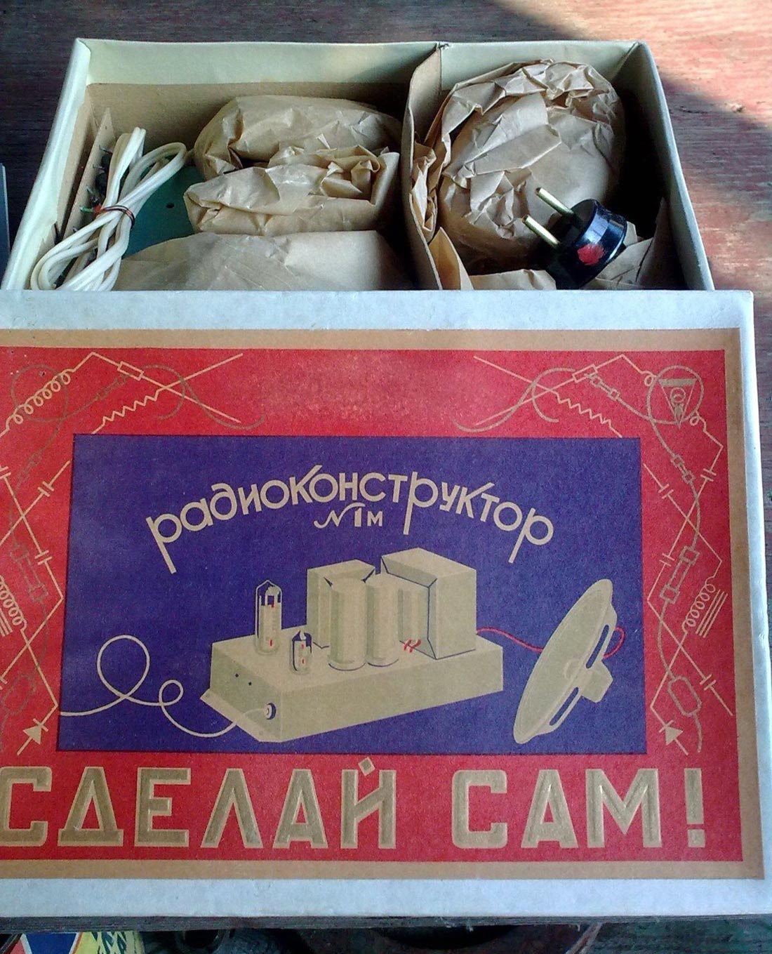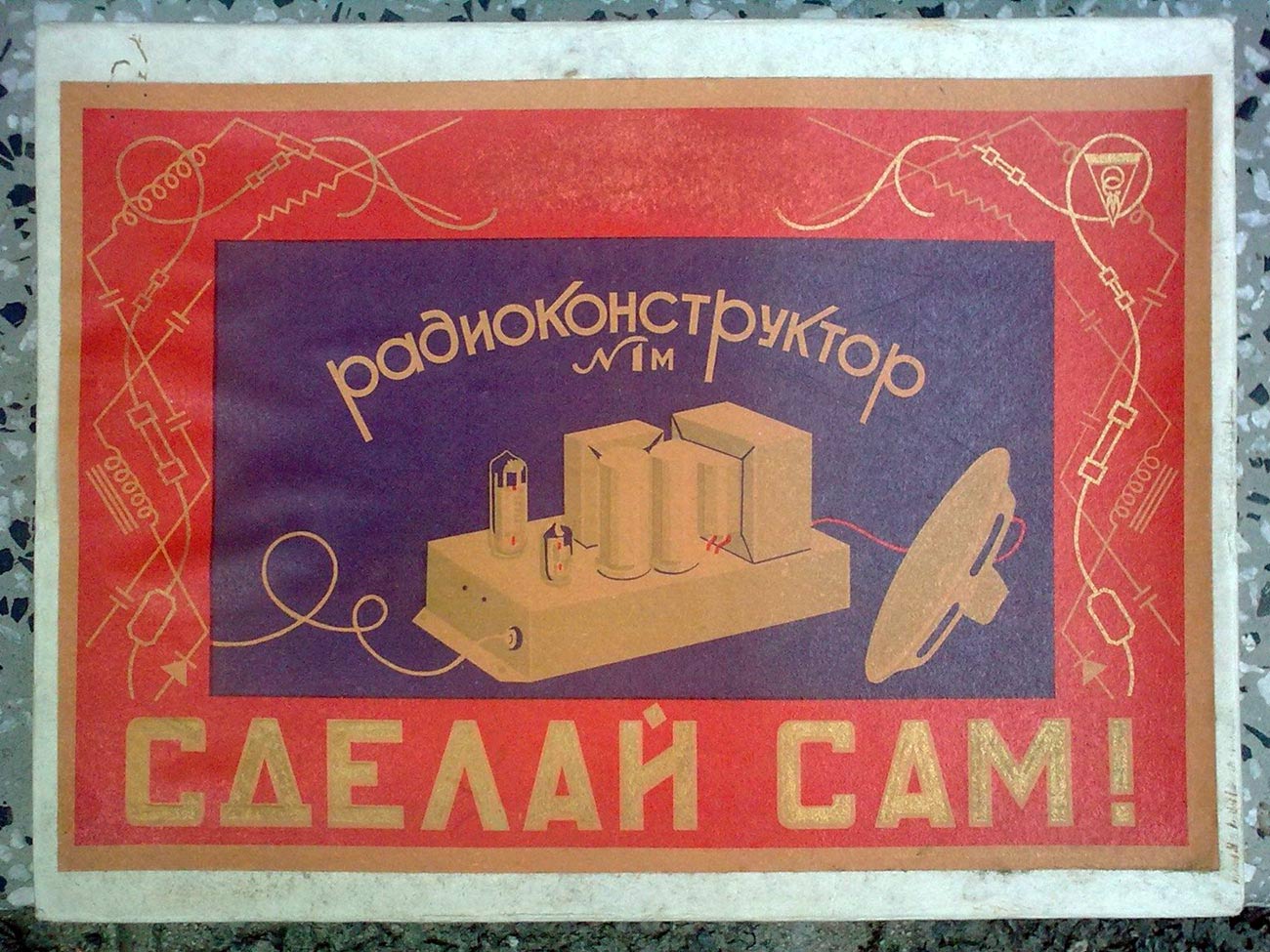 Радиоконструктор №1 *Сделай сам* выпускался с 1963 года одним из предприятий Мосгорисполкома. Радиоконструктор №1 предназначен для сборки начинающими радиолюбителями двухлампового приёмника прямого усиления по схеме 0-V-2 (детекторный с двумя каскадами усиления), работающего в диапазонах ДВ или СВ. С 1969 года выпускался радиоконструктор №1М *Сделай сам* с незначительными изменениями в схеме и уже готовым входным контуром (предпоследние фото). В первом радиоконструкторе *Сделай сам* его надо было изготавливать самостоятельно. Последнее фото (колоризация) РК *Сделай сам* (чёрная и зелёная стрелки) в отделе *Юным конструкторам* универмага *Детский мир* в Москве.