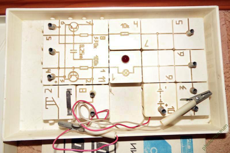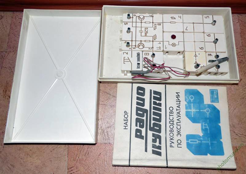 Набор *Радиокубики-М* выпускался предположительно с 1986 года. С помощью набора можно собрать несколько действующих электронных устройств, соединяя кубики между собой по приведённым в инструкции по эксплуатации схемам и рисункам.
