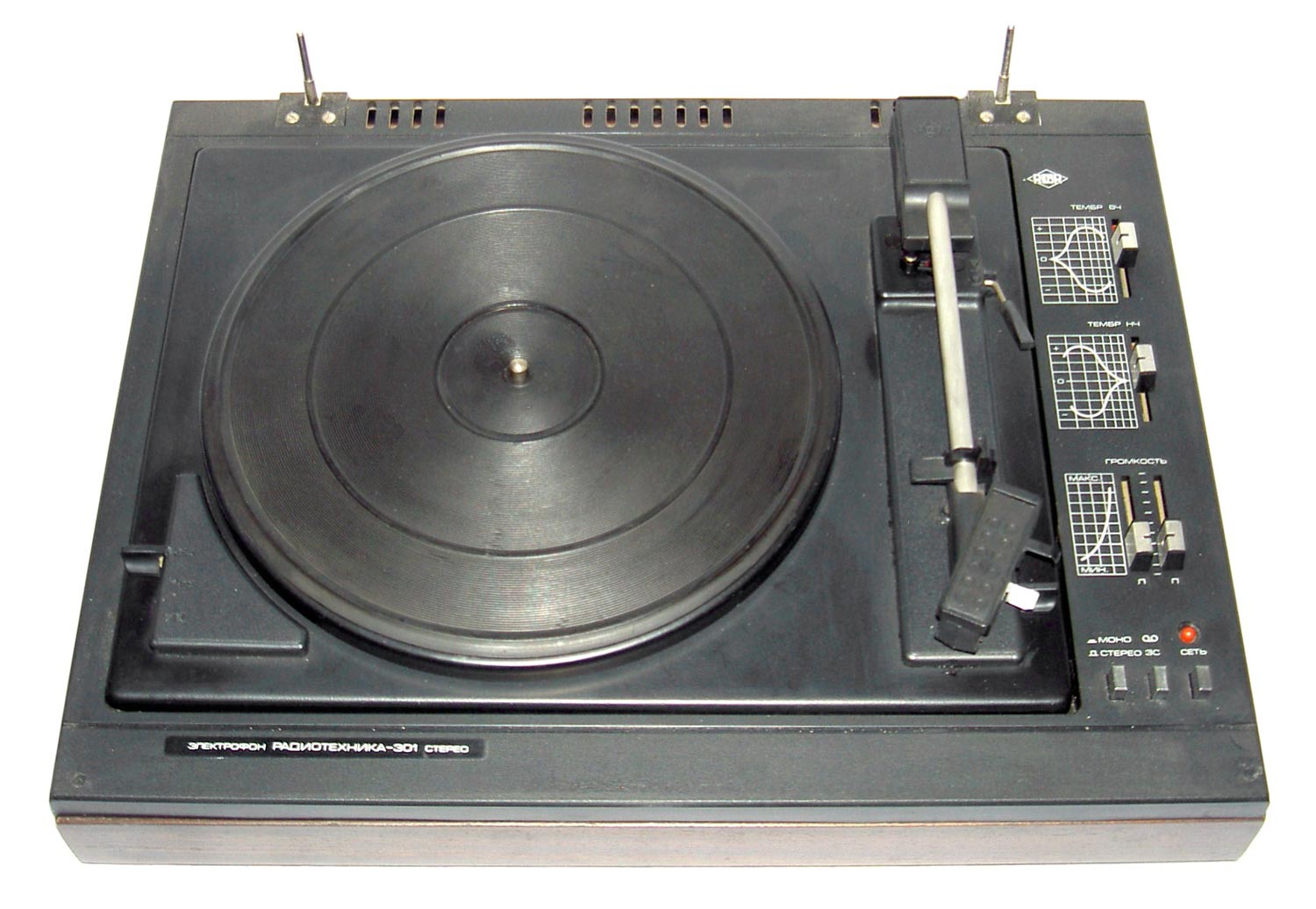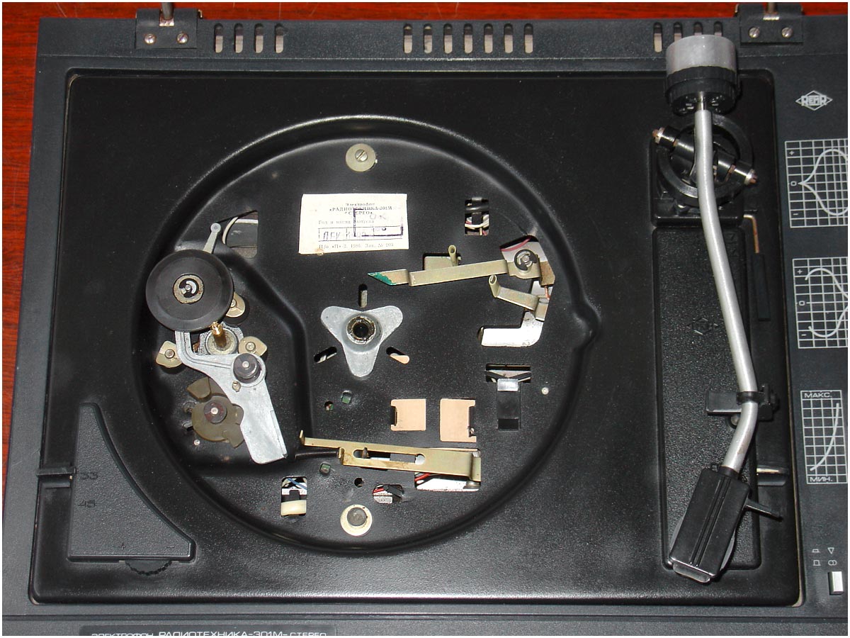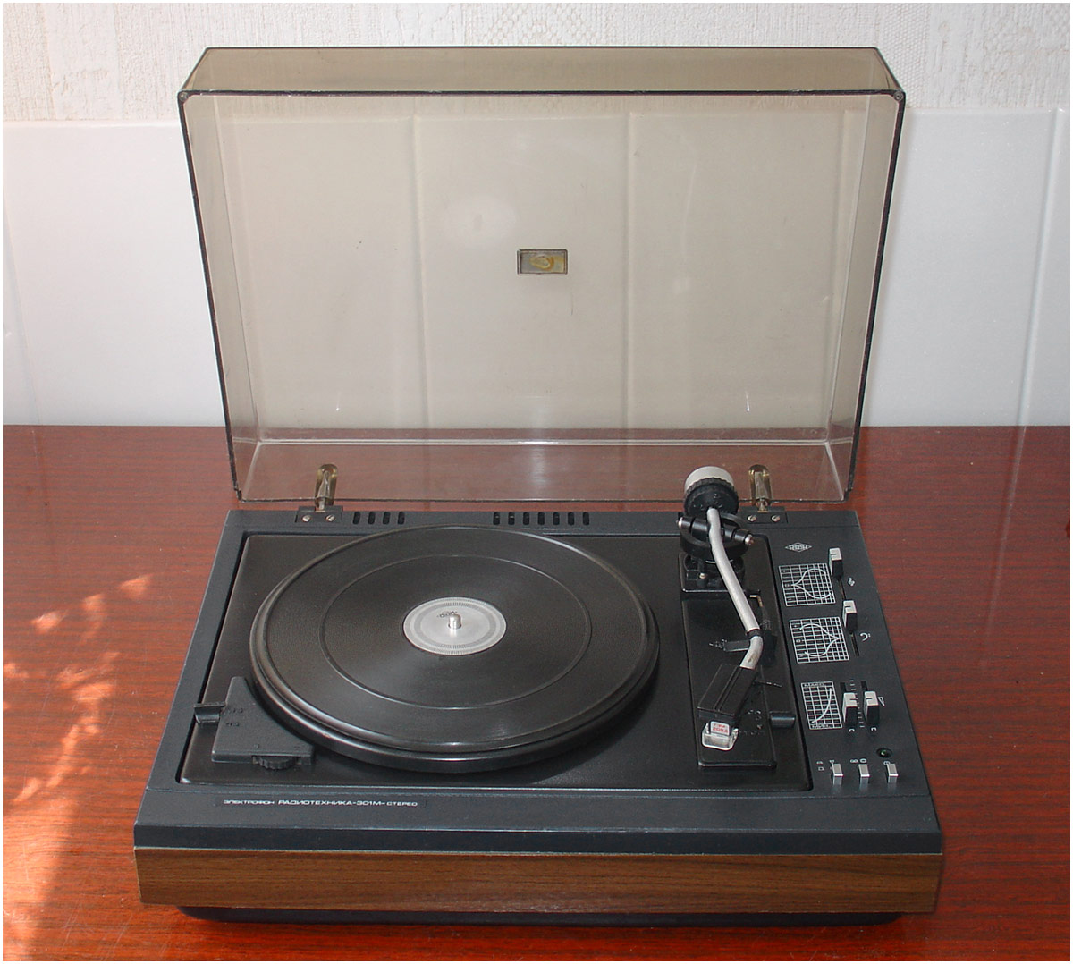 Электрофон *Радиотехника-301-стерео* с 1984 года выпускал Рижский ЭМЗ. ЭФ предназначен для воспроизведения стереофонических записей с грампластинок. В нём установлено III-ЭПУ-62СП. Имеются регуляторы тембра ВЧ, НЧ, громкости, баланса. Диапазон рабочих частот 80...12500 Гц. Номинальная выходная мощность 2х6 Вт. Потребляемая мощность 50 Вт. Габариты ЭФ 430х355х160 мм. Габариты АС 215х365х185 мм. Вес 21 и 8 кг. С 1986 года завод выпускал электрофон **Радиотехника-301М-стерео** по оформлению, конструкции и схеме, кроме нового двухскоростного 2-ЭПУ-65СМ и расширенных воспроизводимых частот до 63...14000 Гц, аналогичный описанному.