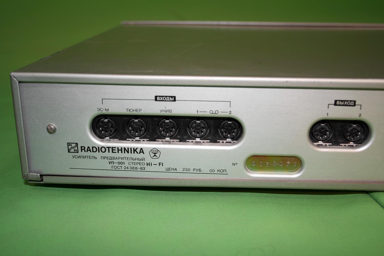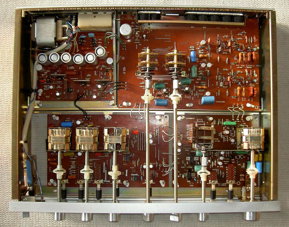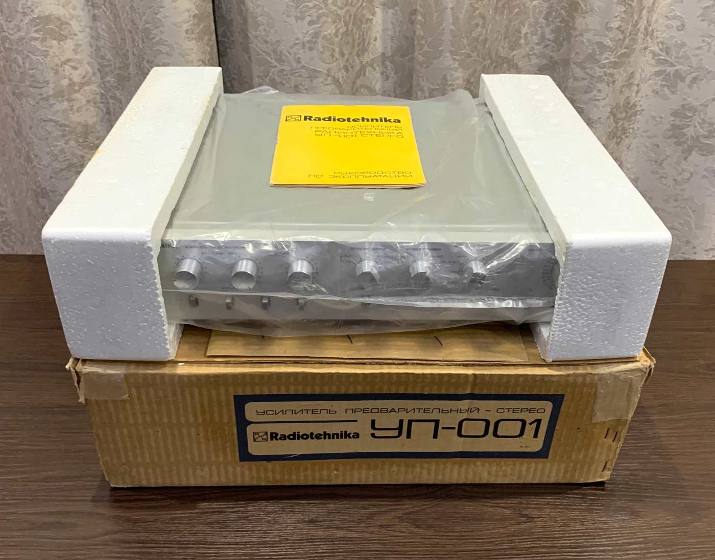 Стереофонический предварительный усилитель *Радиотехника УП-001-стерео* с 1985 года выпускал Рижский радиозавод имени А.С. Попова. ПУ рассчитан на работу в составе комплекса. Он обеспечивает выбор источника сигнала, с обработкой и усилением для прослушивания и источника для записи на два магнитофона, перезапись с первого магнитофона на второй и наоборот, контроль записываемого сигнала. В усилителе имеется плавная и ступенчатая регулировка громкости с отключаемой тонкомпенсацией, раздельная регулировка тембра и стереобаланса. Номинальное выходное напряжение, при номинальном сопротивлении нагрузки 10 кОм - 1 В. Номинальный диапазон частот - 20...20000 Гц при неравномерности АЧХ ±0,3 дБ. Коэффициент гармоник - 0,03%. Потребляемая усилителем мощность 15 Вт. Габариты аппарата - 430 х 358 х 88 мм. Масса - 7,2 кг.