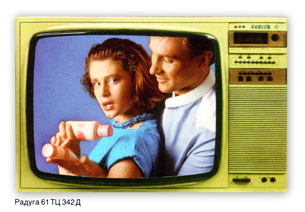 Телевизионный приёмник цветного изображения *Радуга 61ТЦ-342Д* с 1986 года выпускало Ленинградское ПО имени Козицкого. Цветной унифицированный полупроводниково-интегральный телевизор кассетно-модульной конструкции на основе моношасси с пятью модулями: радиоканала, цветности, строчной и кадровой разверток, питания. Кинескоп типа 61ЛК5Ц с самосведением и углом отклонения лучей 90°. Сенсорное устройство выбора 10 заранее настроенных телевизионных программ. Световая индикация выбранной программы. Программируемый таймер и электронные часы. Приём в диапазонах метровых (МВ) и дециметровых (ДМВ) волн. Беспроводное дистанционное управление на инфракрасных лучах. Гнёзда подключения магнитофона, головных телефонов. Бестрансформаторный блок питания, позволяющий эксплуатировать телевизор без стабилизации напряжения сети. Корпус модели облицован декоративной отделочной плёнкой или пенополиуретаном, с окраской под ценные породы. Диапазон воспроизводимых частот 80-12500 Гц. Выходная номинальная мощность 1,5 Вт. Потребляемая мощность 80 Вт. Габариты 495х748х550 мм. Вес 32 кг.