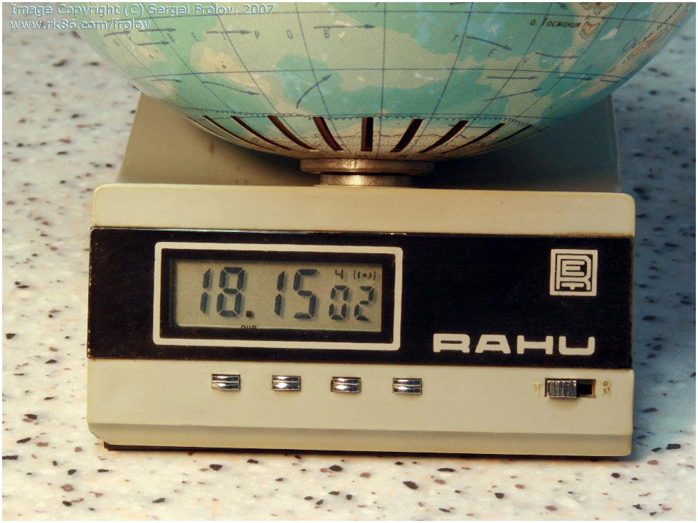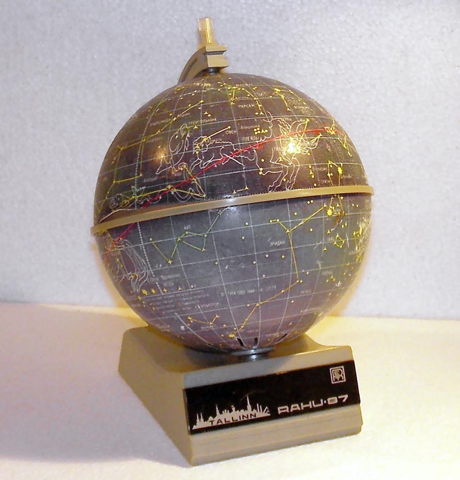 Стационарный радиоприёмник *Rahu-87* с 1987 года выпускал Таллинский завод *Punane RET*. Радиоприёмник **Rahu-87** (в переводе с эстонского - мир) выпускался в двух вариантах, обычном и с электронными часами, в этом случае он именовался как *Rahu*, а также в различных вариантах оформления рисунка глобуса. Приёмник собран по супергетеродинной схеме и работает в диапазоне СВ. Чувствительность 1,5 мВ/м. Селективность 16 дБ. Питание 4 элемента **АА**, с электронными часами питание осуществляется от 5 элементов (один элемент на часы). Включение приёмника и регулировка громкости осуществляется ручкой расположенной вверху глобуса, а настройка на радиовещательную станцию происходит поворотом глобуса вокруг собственной оси.