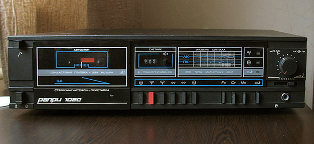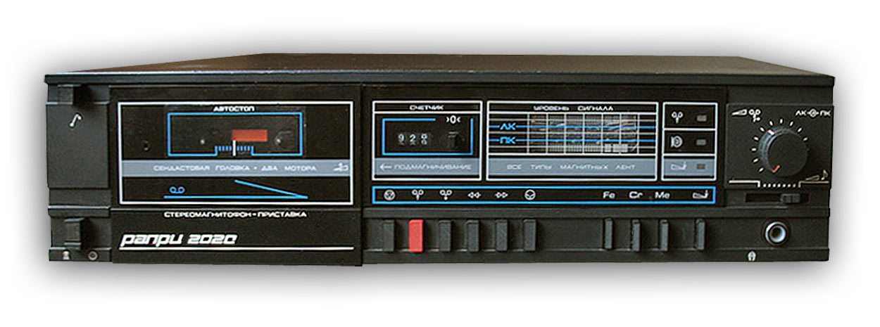 Кассетный магнитофон-приставка *Рапри-202С* с начала 1987 года выпускалась Московским заводом *Радиоприбор*. МП обеспечивает запись звуковых фонограмм на магнитную ленту и воспроизведение их через внешний усилитель с АС. В МП *Рапри-202С* установлена сендастовая магнитная головка, система ШП компандерного типа, электролюминесцентная индикация уровня записи и воспроизведения, регулировка тока подмагничивания. Имеется функция поиска по фрагментам фонограмм. Основные технические характеристики МП: Скорость ленты - 4,76 см/с; коэффициент детонации ±0,15 %; относительный уровень шумов и помех -60 дБ; диапазон рабочих частот на линейном выходе 30...16000 Гц; потребляемая мощность 20 Вт; наружные размеры модели 430х350х115 мм; её масса 7 кг. Розничная цена 400 рублей. С осени 1987 года МП именовалась как *Рапри МП-202С*, а в начале 1988 года модель начала выпускаться под наименованием *Рапри МП-102С*, вызвано это было тем, что параметры МП соответствовали 1 классу сложности. Модель полностью аналогична описанной выше, изменилось лишь наименование и цена, которая теперь была 455 рублей. Магнитофон-приставку *Рапри МП-102С* выпускали в нескольких вариантах цветового оформления.