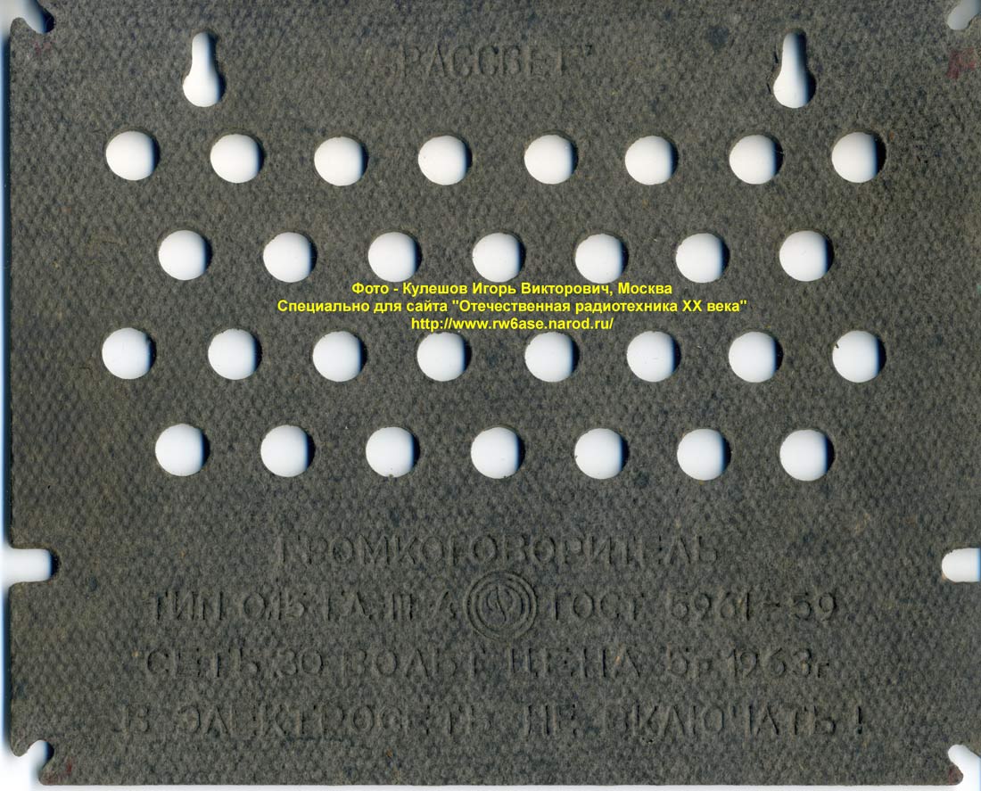 Абонентский громкоговоритель "Рассвет" с 1962 года выпускал Ленинградский завод радиоизделий.
