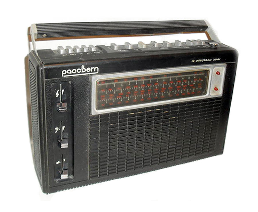 Портативный радиоприёмник *Рассвет-201* в 1981 году разработало Ленинградское специализированное КБ. Приёмник предназначен для приёма в диапазонах ДВ, СВ, KB (2 поддиапазона) и УКВ. Особенность приёмника - применение блоков из гибридных толстопленочных микросхем. Это позволило создать легкий и малогабаритный аппарат. Радиоприёмник обладает повышенной выходной мощностью, имеет раздельные тракты по AM и ЧМ с электронной настройкой во всех диапазонах светодиодные индикаторы точной настройки. В радиоприёмнике предусмотрены три фиксированные настройки в диапазоне УКВ и одна в СВ, БШН и АПЧ в диапазоне УКВ. Питание от сети или 6 элементов 343. Чувствительность в диапазоне ДВ 2, СВ 1, KB 0,25, УКВ 0,025 мВ/м. Селективность в диапазонах AM - 33 дБ. Диапазон звуковых частот тракта AM 125...4000, ЧМ 125...10000 Гц. Номинальная выходная мощность 1, максимальная 2 Вт. Габариты модели 280х180х57 мм. Вес с батареями 2,5 кг. В 1982 году радиоприёмник и документация были переданы на Уфимский завод коммутационной аппаратуры, где в 1984 году опытно был выпущен усовершенствованный приёмник с наименованием *Уфа-201*. Фото Алексея Власова, Уфа.