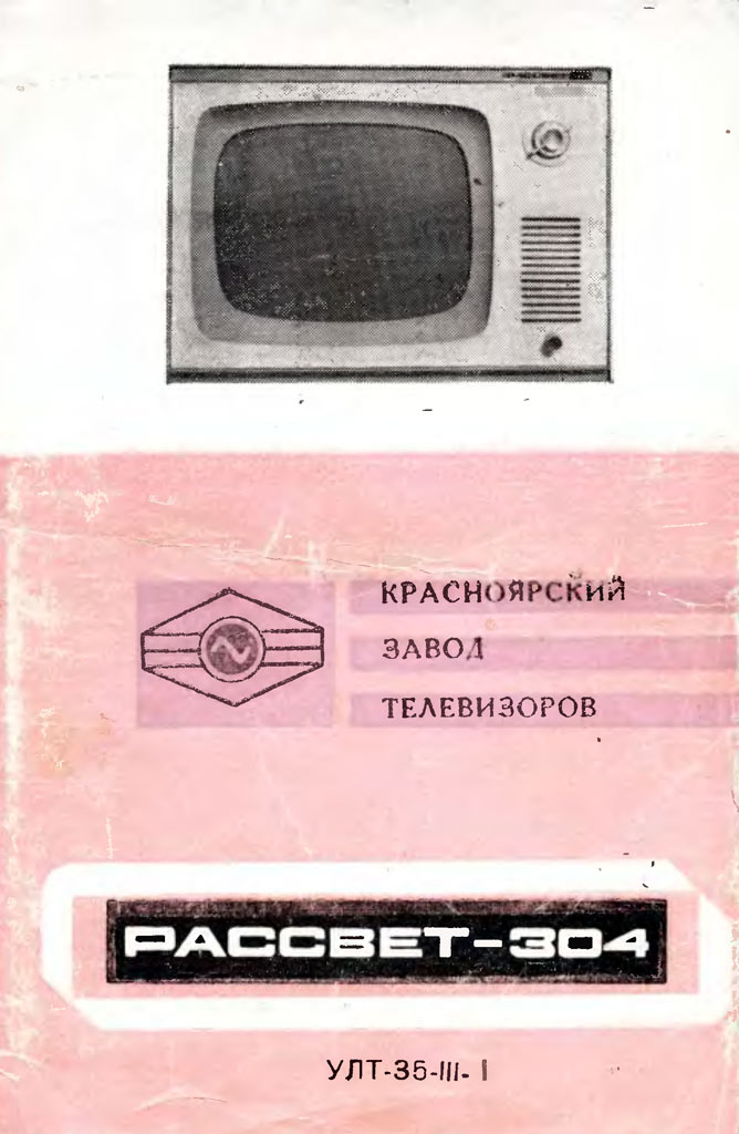 Телевизионный приёмник чёрно-белого изображения *Рассвет-304* с осени 1971 года выпускал Красноярский завод телевизоров. **Рассвет-304** (УЛТ-35-III-1) - унифицированный телевизор III класса, выпускавшийся в настольном оформлении с различными вариантами отделки корпуса и передней панели. В телевизоре применен кинескоп 35ЛК6Б, с размером экрана по диагонали 35 см и углом отклонения электронного луча 70°. Телевизор обеспечивает приём телепередач на любом из 12-ти каналов в зоне приёма телевизионного центра или ретрансляционной станции. Есть возможность подключения магнитофона для записи звукового сопровождения или прослушивание звукового сопровождения на головные телефоны; установки панели для подключения ПДС. АРУ обеспечивает устойчивое изображение. Действие помех минимально с системой АПЧ и Ф строчной развёртки. Основные параметры: Размер изображения 224х292 мм. Чувствительность ТВ - 200 мкВ. Разрешающая способность 350...450 линий. Выходная мощность звукового канала 0,5 Вт. Телевизор питается от сети переменного тока напряжением 110, 127, 220 или 237 В. Потребляемая мощность 150 Вт. Габариты телевизора 379 x 494 х 438 мм. Вес 25 кг. Всего было выпущено около 2,5 миллиона телевизоров.