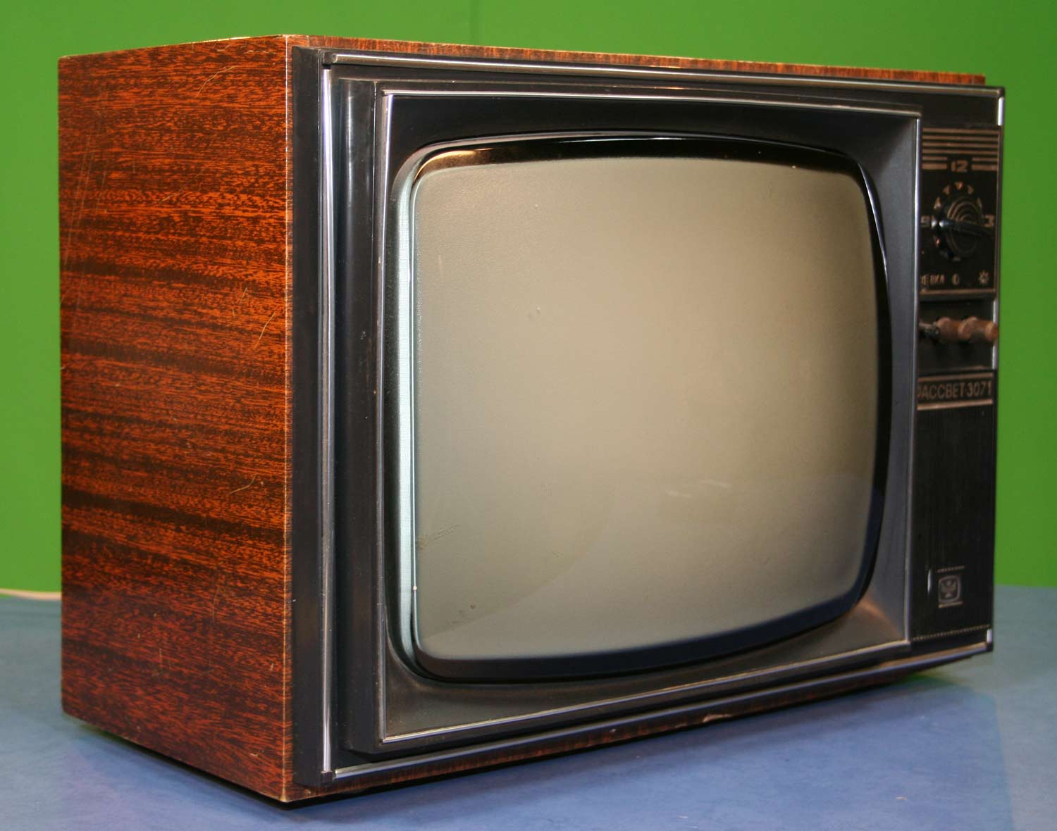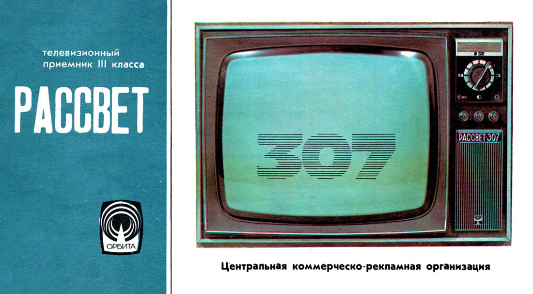 Телевизор *Рассвет-307* с 1975 года выпускал Красноярский завод телевизоров. В годовщину 20-летия основания сборочного цеха завода в производство запущена опытная партия нового унифицированного лампово-полупроводникового телевизора **Рассвет-307**. Массовый выпуск начался с 1977 года. Телевизор рассчитан на приём в любом из 12-ти каналов МВ диапазона, а при установке селектора СКД-22 и в ДМВ диапазоне. Всё детали для этого, кроме селектора в телевизоре установлены. Установлен кинескоп 40ЛК6Б. Чувствительность телевизора 110 мкВ. Разрешающая способность 500 линий. Номинальная выходная мощность 0,5 Вт. Потребляемая мощность 140 Вт. Размеры ТВ 520х420х390 мм. Масса 24 кг. Новый телевизор **Рассвет-307-1** УЛПТ-40-III-1 выпускаемый с 1982 года практически не отличается от описанного. Всего за годы выпуска телевизоров **Рассвет-307** и **Рассвет-307-1** выпущено около 8 миллионов экземпляров.
