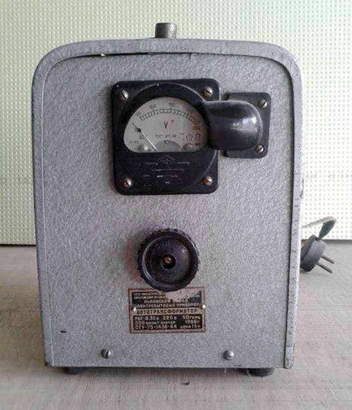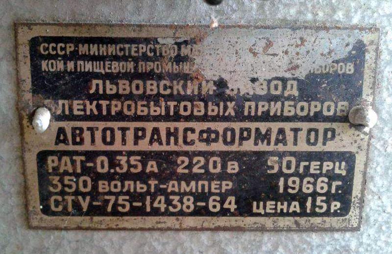 Автотрансформатор *РАТ-0,35а* с 1960 года выпускал Львовский завод электробытовых приборов. Автотрансформатор предназначен для ручного поддержания выходного напряжения в 220 вольт, при колебаниях его в питающей сети от 143 до 245 вольт.
