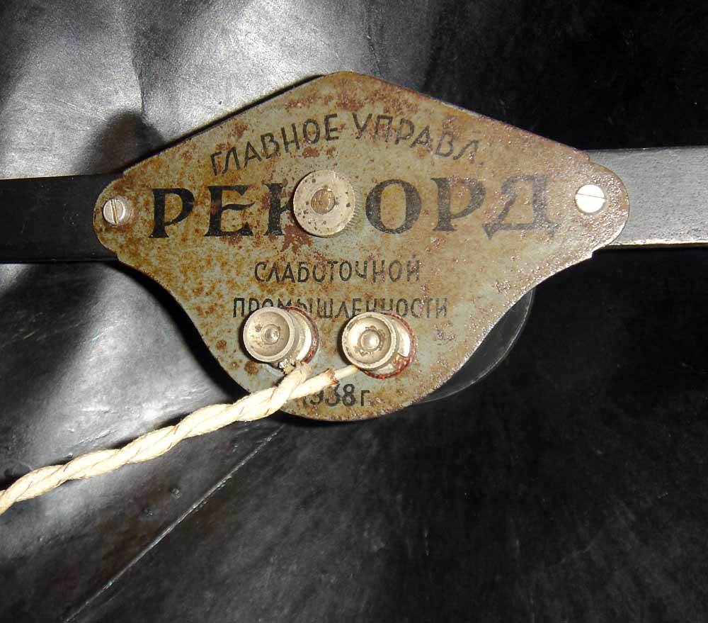Абонентский громкоговоритель серии "Рекорд" с начала 1925 года и по 1952 год включительно выпускало около десятка заводов СССР. Абонентский громкоговоритель серии "Рекорд" (тарелка или репродуктор) был самым массовым в СССР, выпускался десятком различных заводов в нескольких модернизациях, как то "Рекорд-1", "Рекорд-3" и т.д. Установить всю хронологию выпуска этих громкоговорителей сейчас практически невозможно. Репродукторы серии "Рекорд" были настольные и настенные, с различными подставками или подвесами. Устройство репродукторов простое - это конусный фибровый или бумажный диффузор диаметром ~ 40 см, укреплённый на металлических держателях, совмещённый с электромагнитным механизмом, где был установлен механический регулятор громкости. Подробнее о громкоговорителях серии "Рекорд" в приведённой документации.