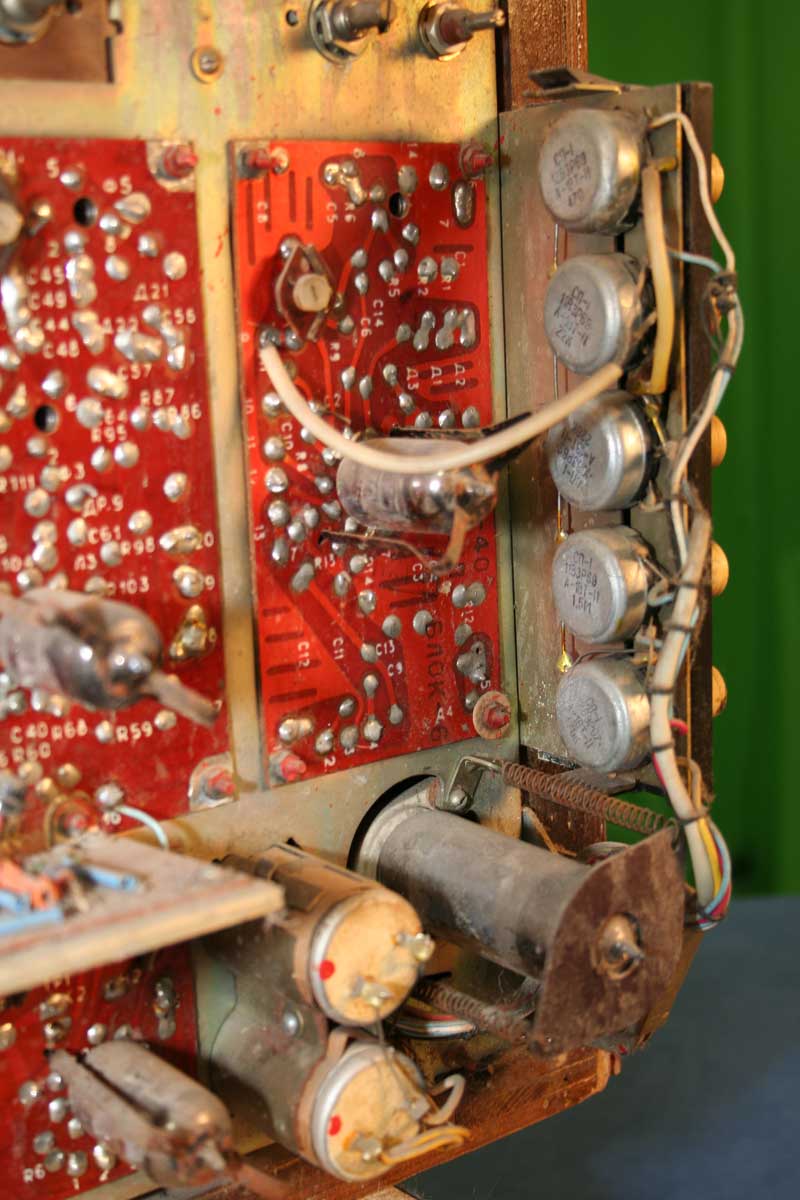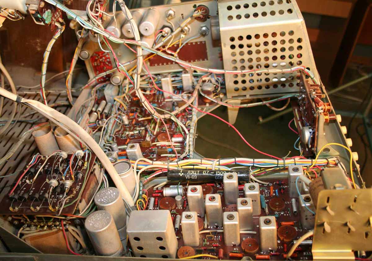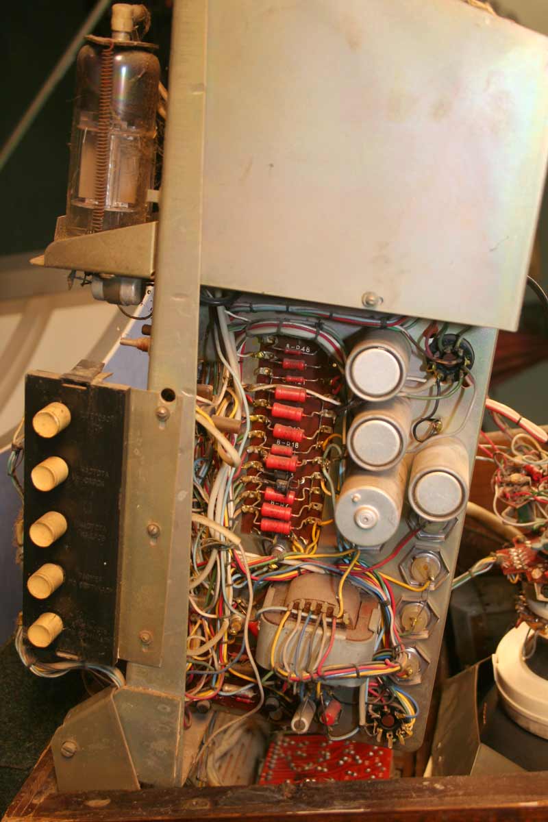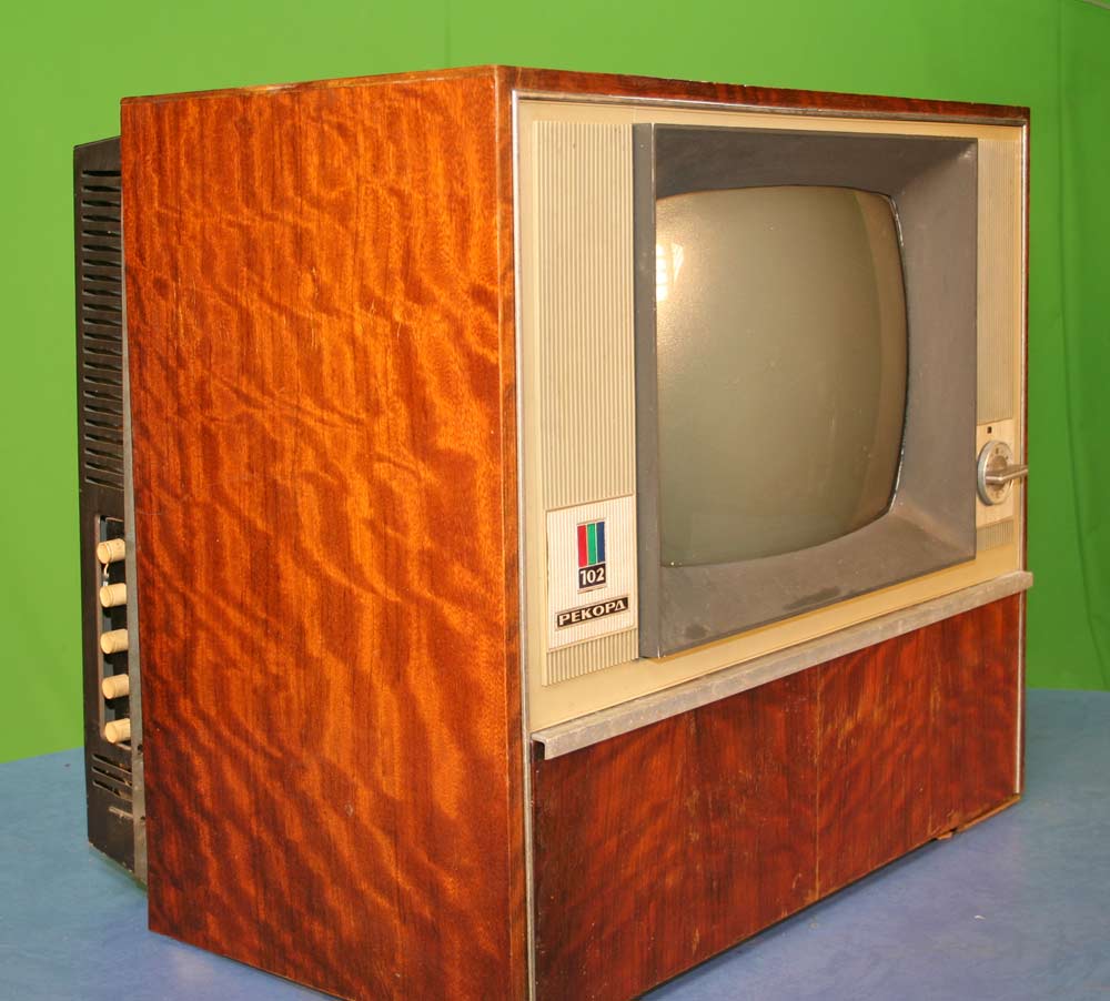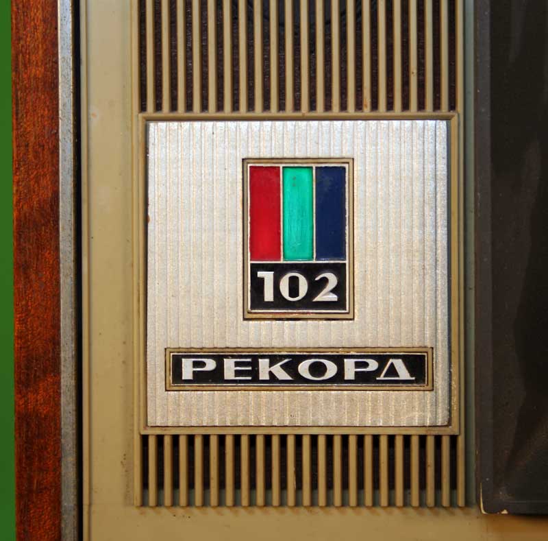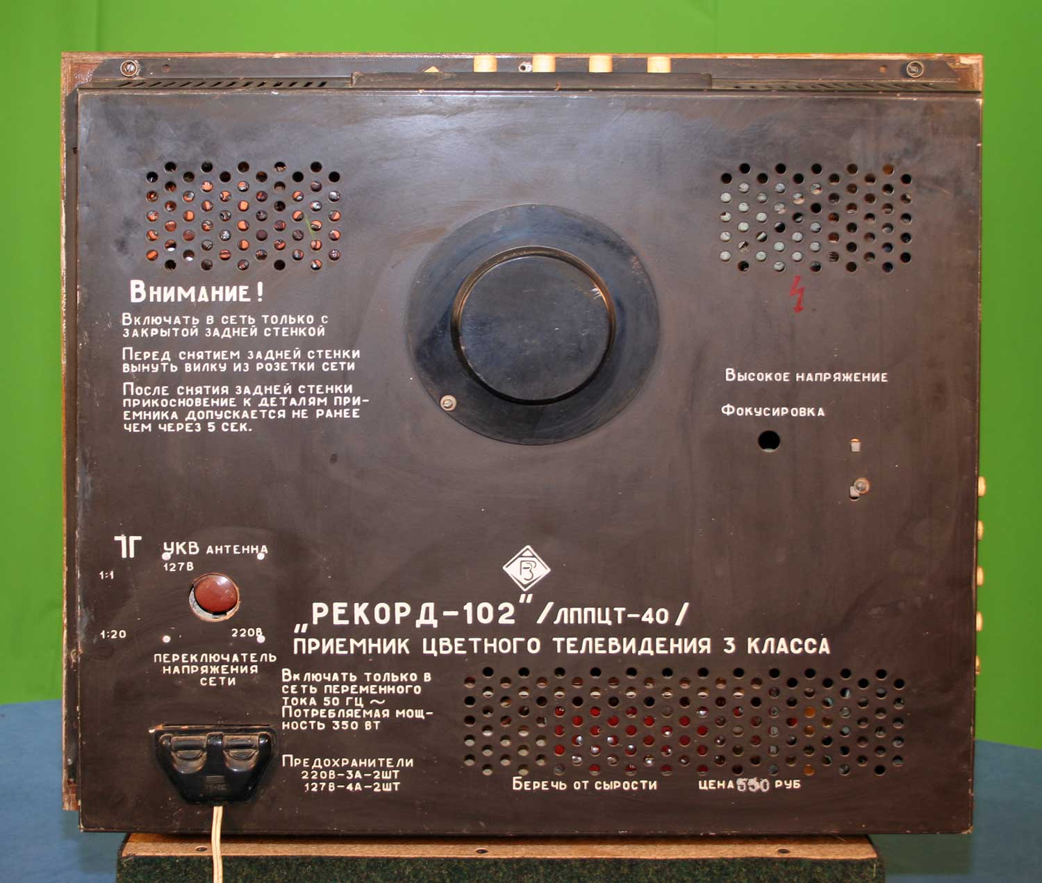 Телевизионный приёмник цветного изображения *Рекорд-101* с 1968 года малой серией начал выпускать Александровский радиозавод. Цветной телевизор **Рекорд-101** (ЦТ-40) предназначен для приёма цветных и ч/б программ в любом из 12-ти каналов МВ диапазона. В модели применён кинескоп типа 40ЛК2Ц с углом отклонения лучей 70 градусов. Телевизор собран на 29 радиолампах без применения транзисторов. Конструкция изначально оказалась не совсем удачная. При потребляемой от электрической сети мощности в 360 Вт, телевизор выделял много тепла и имел весьма большой корпус, сравнимый с моделями на кинескопах 59 см по диагонали. Выступающая горловина кинескопа имела размер 30 см, что было не особо удобно при транспортировке и эксплуатации. Кинескоп уже через пару месяцев терял некоторые цветовые свойства, а то и вовсе выходил из строя. Телевизор **Рекорд-101** был несколько дешевле остальных телевизоров, чем и привлекал покупателей. Уже к 1970 году в основном из-за неперспективности и множеством технических проблем телевизор был снят с производства и заменён на усовершенствованный цветной телевизор **Рекорд-102**. Первоначально новый телевизор был разработан с одним оформлением, но в серию пошёл телевизор с оформлением как у базовой модели. В модернизированном цветном телевизоре **Рекорд-102** был применён такой же по диагонали, но более совершенный кинескоп 40ЛК4Ц, с углом отклонения луча 90 градусов, 21 радиолампа и 15 транзисторов. По сравнению с предыдущим телевизором в новой модели были значительно уменьшены габариты, масса и потребляемая от электрической сети мощность. Были устранены практически все недостатки предыдущей модели а также введены некоторые новшества.