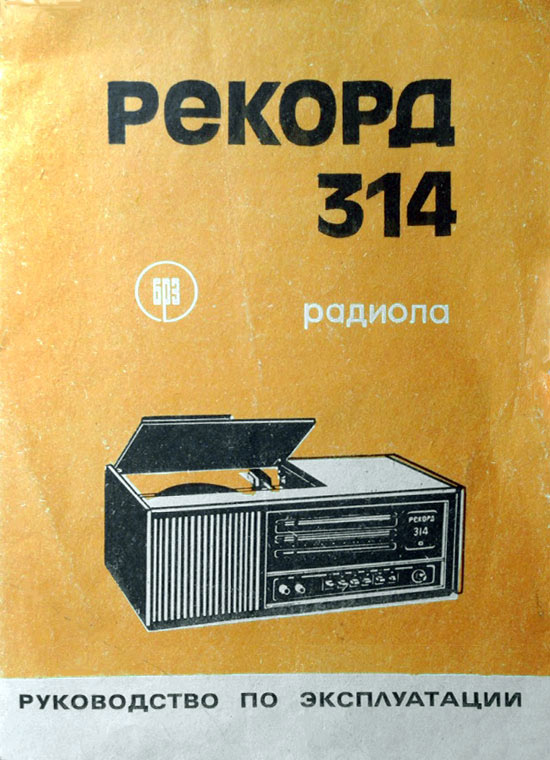 Радиола *Рекорд-314* с 1976 года выпускалась Бердским радиозаводом. Радиола состоит из радиоприёмника 3 класса и ЭПУ, позволяющего проигрывать грампластинки любого формата. Приёмник работает в диапазонах ДВ, СВ, двух поддиапазонах КВ и в УКВ-ЧМ диапазоне. Чувствительность в диапазонах ДВ, СВ - 200 мкВ, KB - 300 мкВ, УКВ - 30 мкВ. Избирательность в ДВ и СВ диапазонах 26 дБ. Номинальная выходная мощность 0,5 Вт. Полоса частот в AM тракте - 125...3500 Гц, в ЧМ и при работе ЭПУ 125...7100 Гц. Питание от сети 127 или 220 В. Потребляемая мощность 75 Вт. Размеры модели 673х320х238 мм. Вес 13 кг.