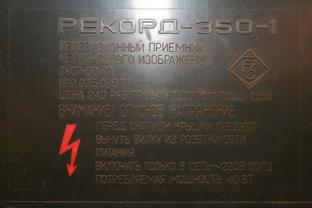 Телевизионный приёмник чёрно-белого изображения *Рекорд-350/Д* с 1987 года выпускал Александровский радиозавод. Телевизор **Рекорд-350** (3УСТ-50-3/4) это унифицированный стационарный полупроводниковый, с применением интегральных микросхем телевизионный приёмник чёрно-белого изображения блочно-модульной конструкции. Телевизор имеет набор сервисных удобств предусмотренных для таких моделей. Кинескоп 50ЛК2Б с углом отклонения лучей 110°. Переключатель каналов барабанный. БП бестрансформаторный и позволяет эксплуатировать телевизор без дополнительной стабилизации напряжения сети. Приём телепередач осуществляется в диапазоне метровых волн. Телевизор, в названии которых после цифрового обозначения имеется индекс **Д**, осуществляют приём передач в диапазонах метровых и дециметровых волн. Имеются гнёзда для подключения магнитофона, головных телефонов. Корпус выполнен из фанеры и облицован текстурной бумагой или пленкой с лаковым покрытием поверхности. Потребляемая телевизором мощность 40 Вт. Масса 20 кг. С 1988 года завод выпускал телевизор *Рекорд-350-1/Д1* (3УСТ-50-12/13) по конструкции и оформлению, кроме изменения номера в унификации не отличавшийся от описанного.