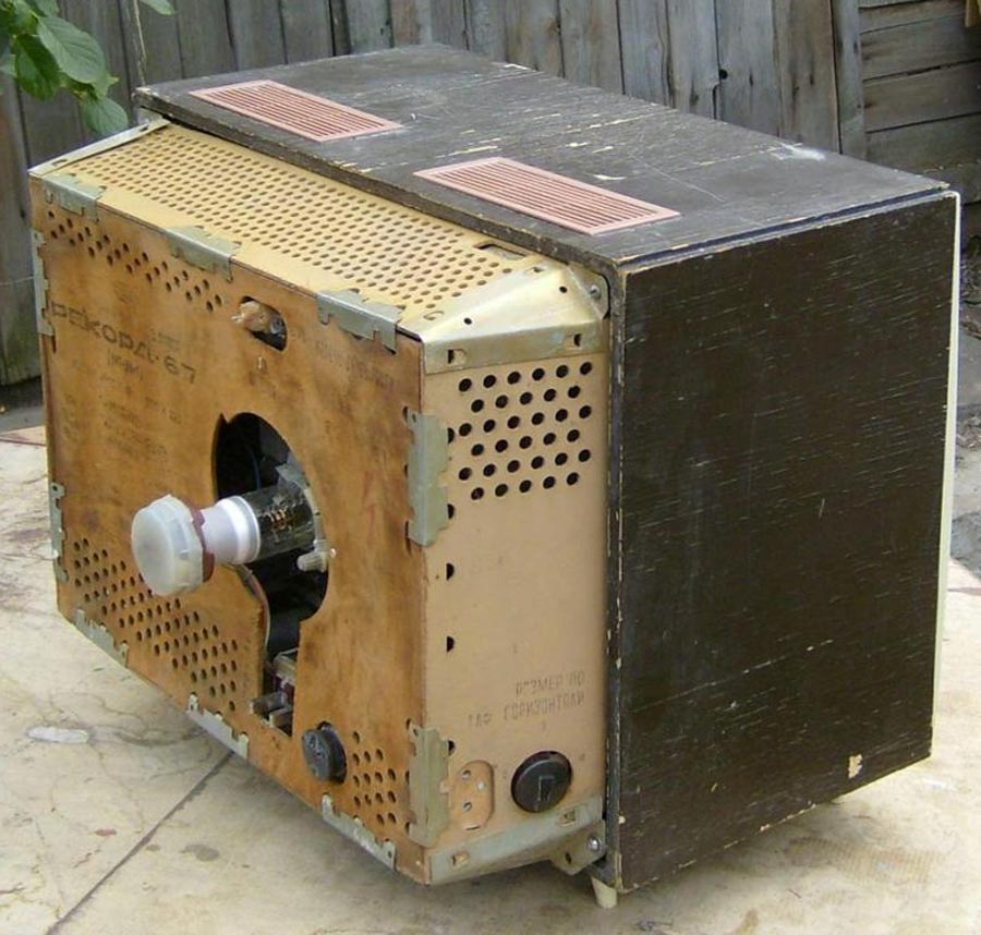 Телевизионный приёмник ч/б изображения *Рекорд-67* с 1967 года выпускал Воронежский завод *Электросигнал*. Унифицированный телевизор 3-го класса *Рекорд-67* (УНТ-35-1) предназначен для приёма программ на любом из 12 каналов МВ диапазона. В телевизоре установлен кинескоп типа 35ЛК6Б с укороченной горловиной и повышенными светотехническими параметрами. В отличии от моделей УНТ-35 введён разъём для подключения приставки двух-речевого сопровождения. Некоторые изменения введены и в электрическую схему. Размер видимого изображения 217х288 мм. В телевизоре применено 14 радиоламп и 14 диодов. Чувствительность телевизора - 200 мкВ. Габариты модели - 480х380х510 мм. Масса - 21 кг. Цена - 215 рублей.